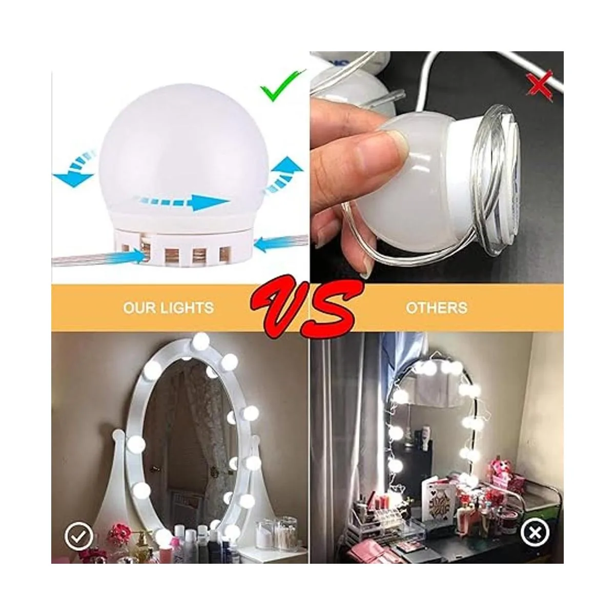 Luz de llenado uniformemente, hace que el maquillaje sea más delicado: luces LED de espejo de tocador estilo Hollywood, 10 bombillas se pueden combinar a voluntad, llenan uniformemente la luz desde múltiples ángulos, el maquillaje no tiene esquinas oscuras ni sombras, y los detalles son más claros, evitando la vergenza del maquillaje inadecuado causado por la luz insuficiente, que es imprescindible que cada hermosa niña.
