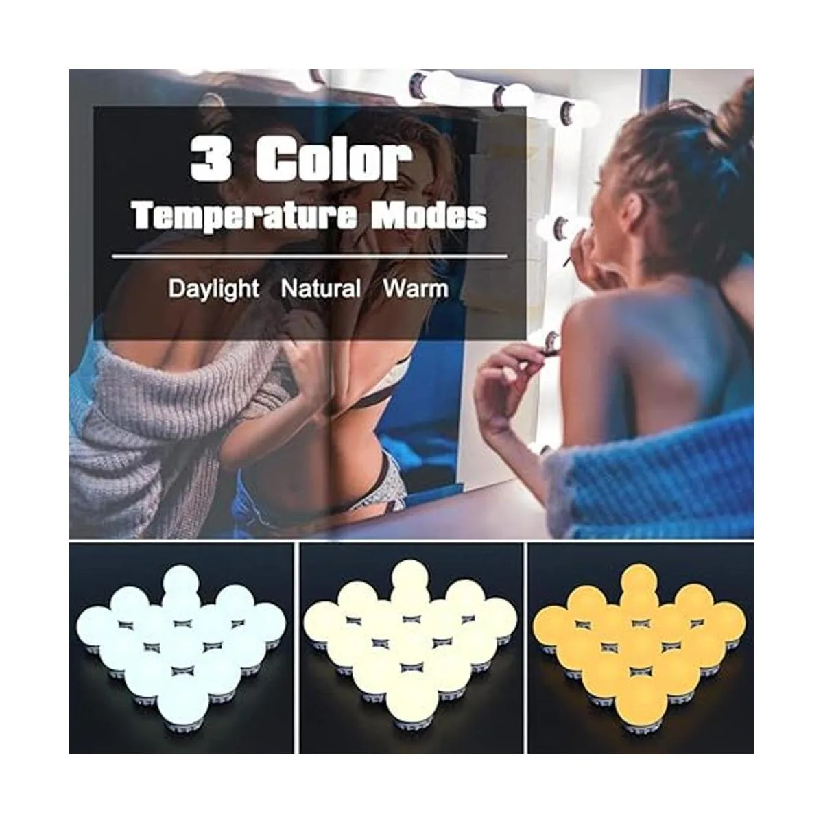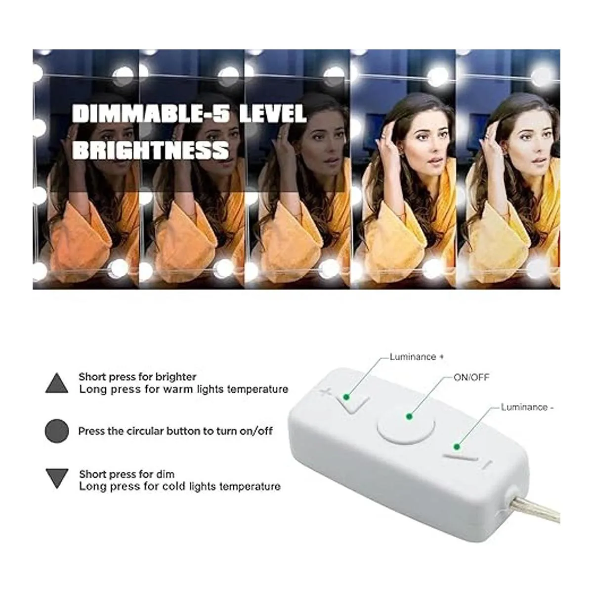 3 modos de temperatura de color y 10 brillos ajustables: las luces Hollywood recomendadas por artistas de maquillaje profesionales, con 3 modos, blanco frío, blanco natural y blanco cálido satisfacen tus diferentes necesidades en diferentes ocasiones. Estas luces de espejo de tocador se proporcionan con 10 niveles de brillo. Te permitirá completar un maquillaje y vestimenta perfectos.