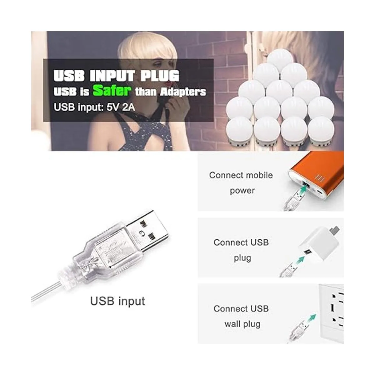 Pretmess Kit de luces de espejo de tocador estilo Hollywood, color y brillo ajustables con 14 bombillas LED, tira de accesorios de iluminación para mesa de tocador de maquillaje en vestidor espejo no incluido