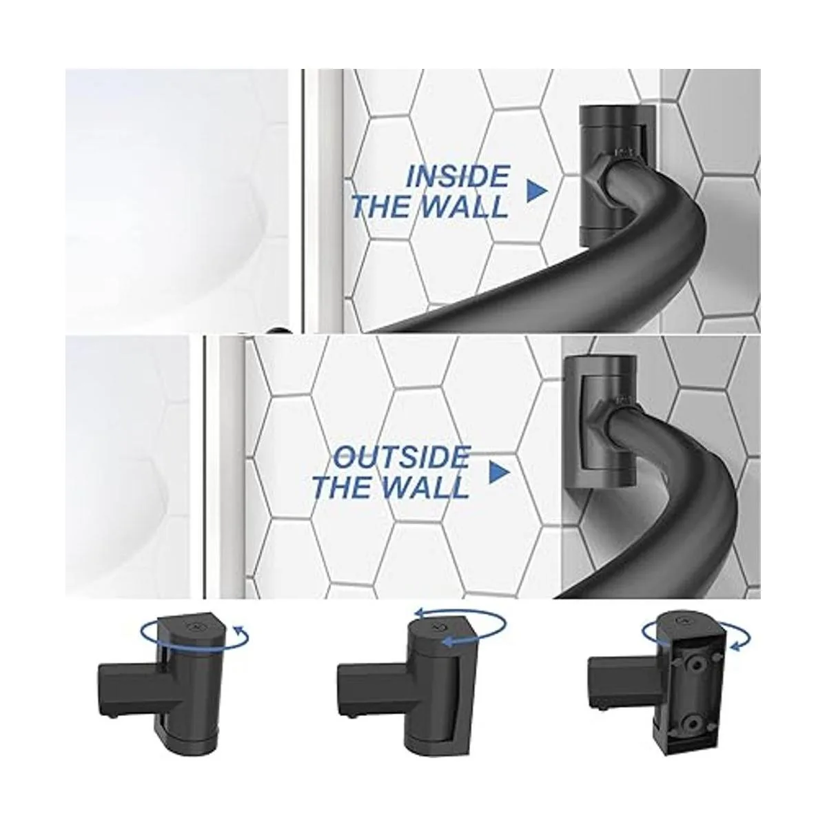 Soporte giratorio: la base de las barras de ducha curvadas se puede girar a cualquier ángulo, se instala sin limitación de ángulo, adecuado para paredes de baño de varias estructuras, es la solución ideal para baño de una variedad de tamaños.