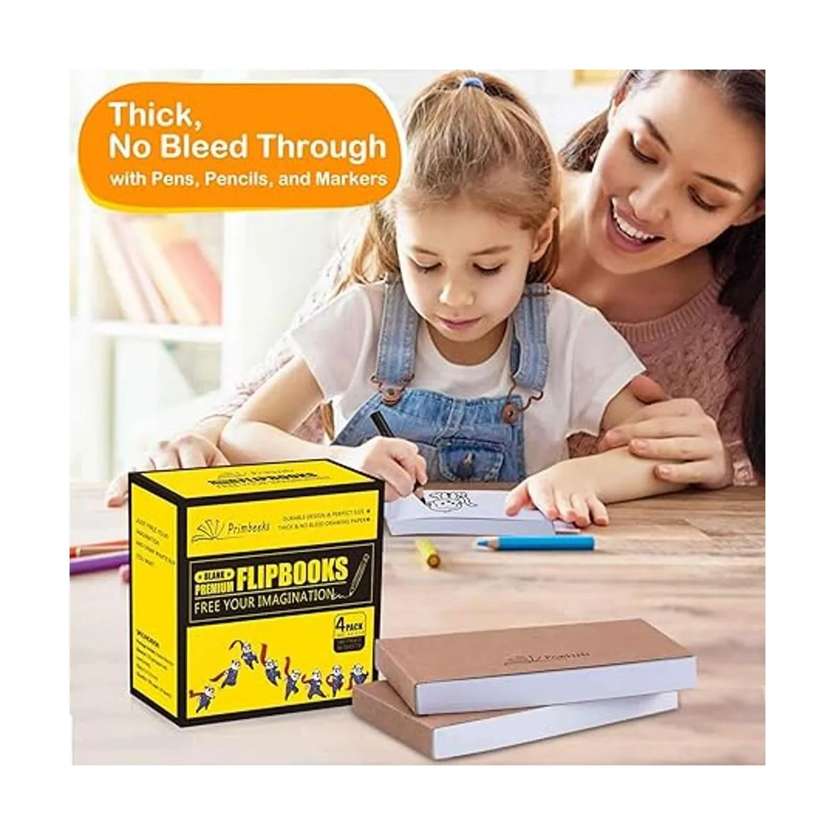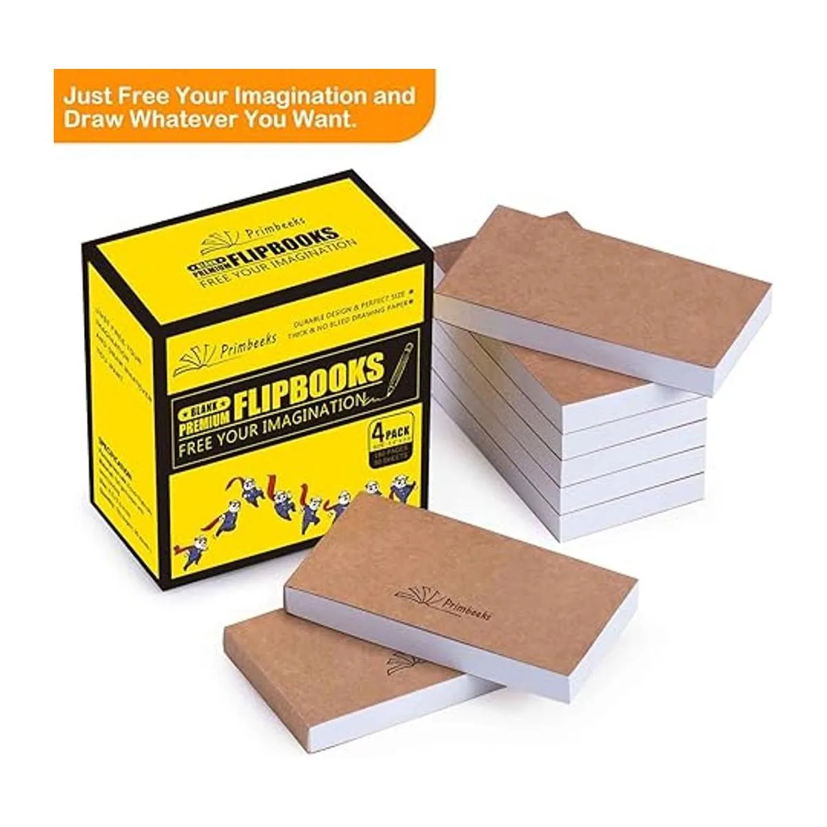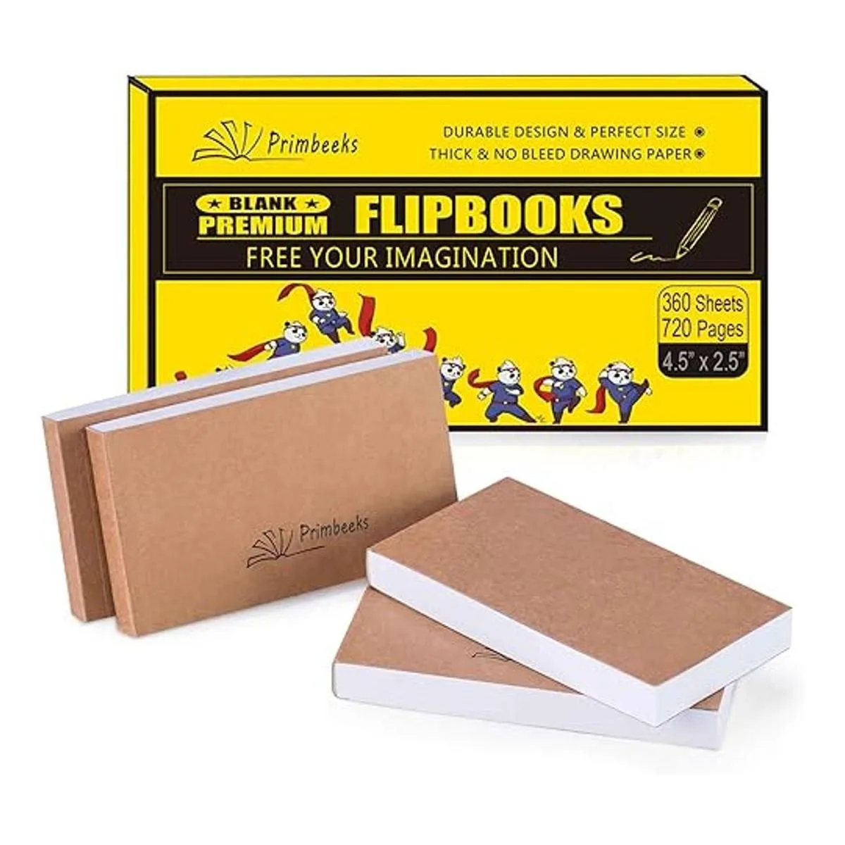 PRIMBEEKS Papel de libro en blanco de alta calidad, paquete de 4 90 hojas, 180 páginas por paquete sin sangrar, papel de animación de 4.5 x 2.5 pulgadas para animación, bocetos, creación de dibujos animados