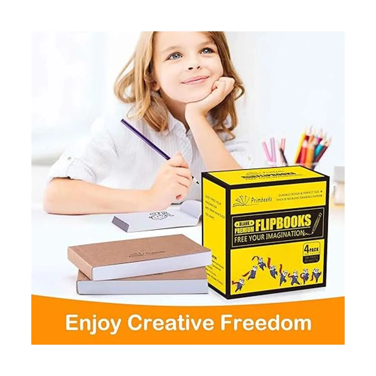 Simplemente libera tu imaginación y dibuja lo que quieras: utiliza estos libros premium para animación y bocetos, desde superhéroes hasta explosiones hasta criaturas fantásticas. Una vez que hayas terminado, gira las páginas con el pulgar para ver cómo sucede la magia. Enciende tu imaginación y dibuja lo que quieras.