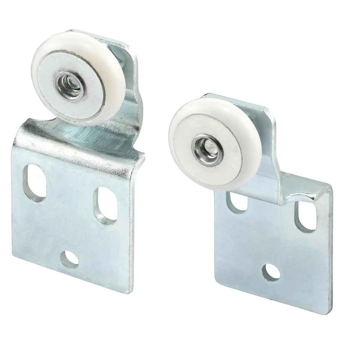 PrimeLine N 7533 Kit de rodillos para puerta corrediza de armario, 34 pulgadas de diámetro de rueda, plástico de borde convexo redondo, construcción de acero estampado, incluye pares de desplazamiento de 38 pulgadas y 12 pulgada, 2 rodillos delanteros y 2 traseros