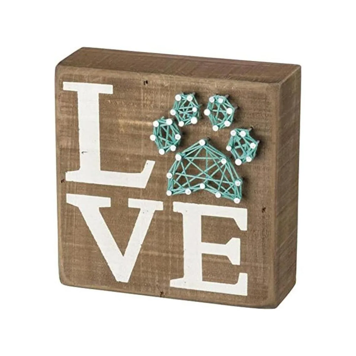 Primitives by Kathy Box Sign String ArtPet Love, 5.0 x 5.0 in, blanco, verde azulado