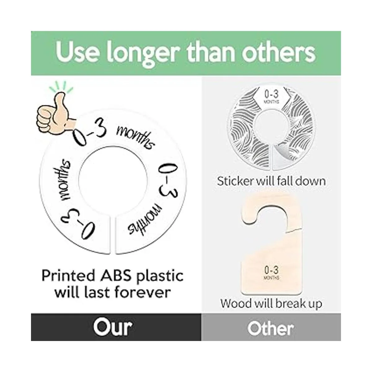 Rango de edad: nuestro organizador de armario para bebé incluye 03 meses, 36 meses, 69 meses, 912 meses, 1218 meses, 1824 meses. Puedes organizar fácilmente la ropa de bebé y averiguar la ropa de bebé que necesitas rápidamente