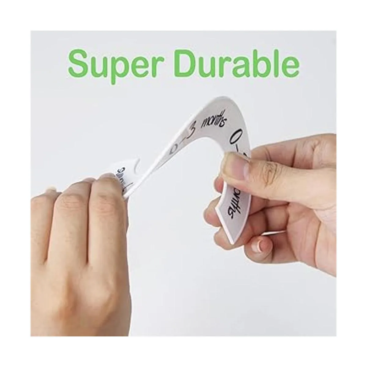 Doble impresión: los separadores de armario para bebé tienen palabras grandes impresas en todo el plato para que los padres puedan verlo fácilmente claramente incluso los separadores de armario para bebé no se mantienen en posición vertical. Además, la palabra impresa no se desvanece, pero la calcomanía se caerá