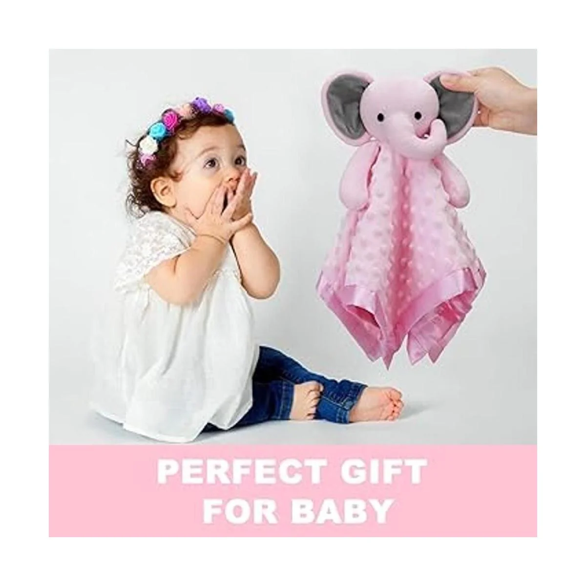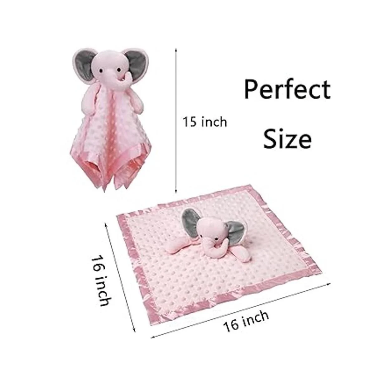 Pro Goleem Manta de seguridad de elefante con juguete de peluche para acurrucarse con un peluche suave, búsqueda de registro de bebés, regalos de Navidad para bebés y niñas pequeñas, color rosa, 16 pulgadas
