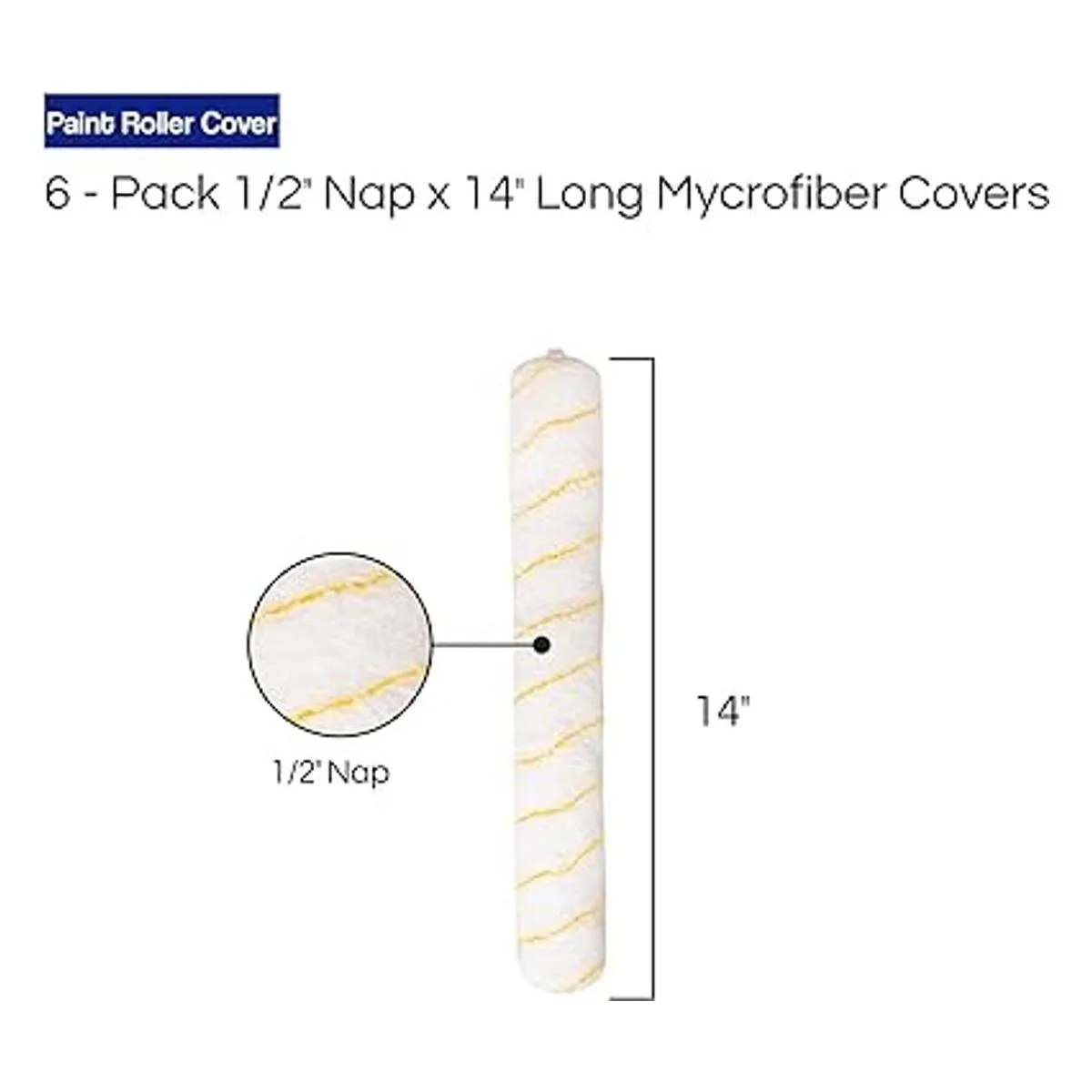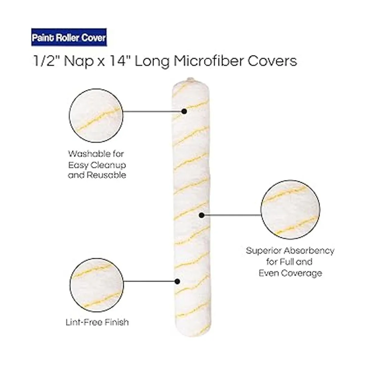 Funda de rodillo de microfibra de 1/2 pulgadas: haz el trabajo bien con las fundas de rodillos de pintura de grado profesional. Fabricado con material de microfibra de alta calidad que es ideal para superficies lisas, semisuaves y con textura media como paredes, techos, cubiertas y paneles de yeso.