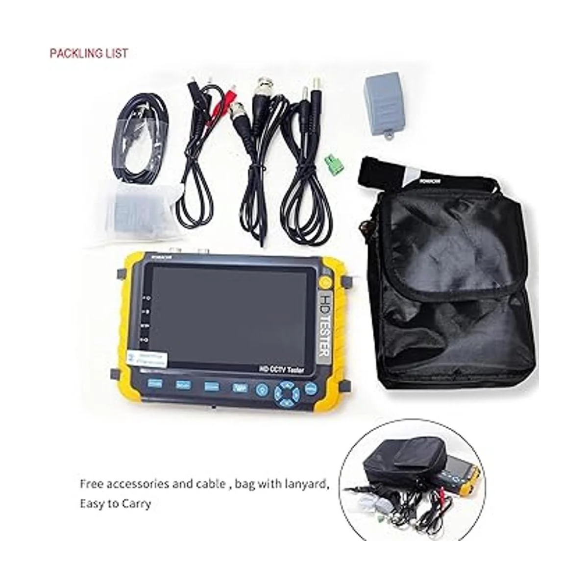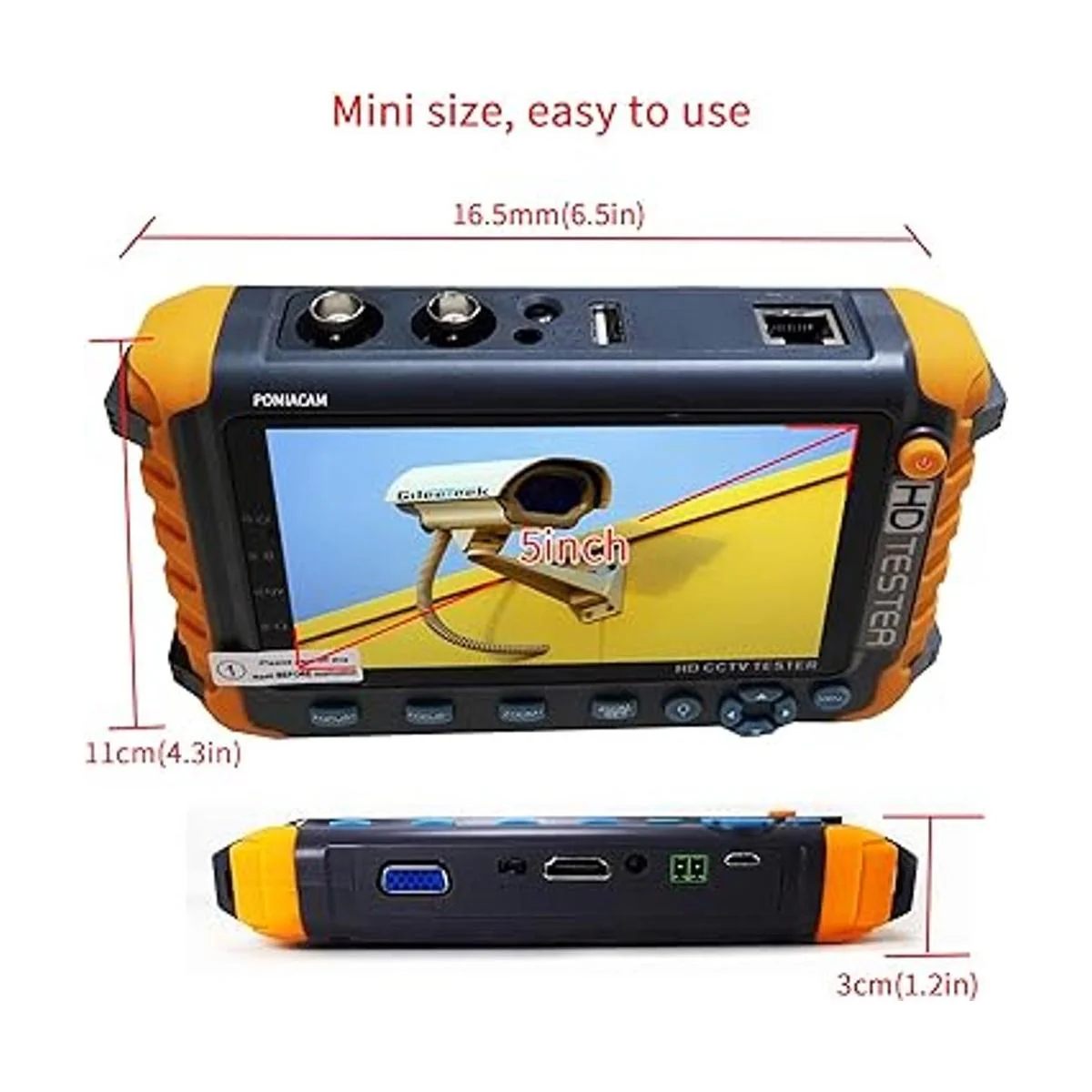 2. El monitor de este probador CCTV multifunción también soporta entrada VGA y entrada HDMI. Puedes utilizar el monitor y el DVR para trabajar juntos de forma cómoda y rápida. El monitor de probador CCTV tiene un mini tamaño: pantalla de 5 pulgadas, la pantalla está protegida por una película, hay protecciones de goma en ambos lados, se puede utilizar en diferentes entornos. Se proporcionan kits de herramientas y cables gratuitos. Asegúrate de usarlo más cómodamente