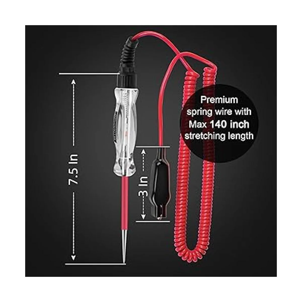 Probador de circuito automotriz de bombilla LED premium, luz de prueba de 624 V con cable de resorte extendido de poliuretano de 135 pulgadas, probador de luz de bajo voltaje de CC