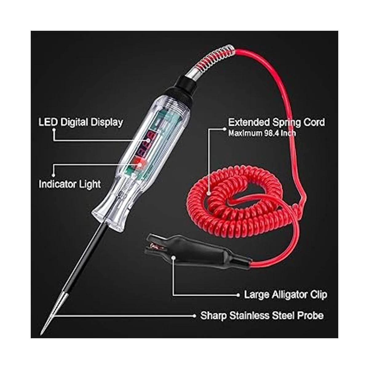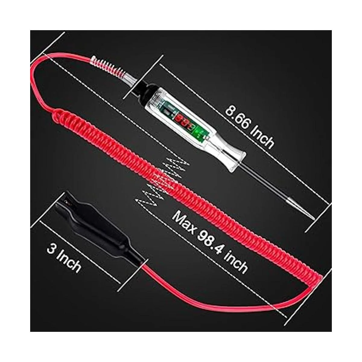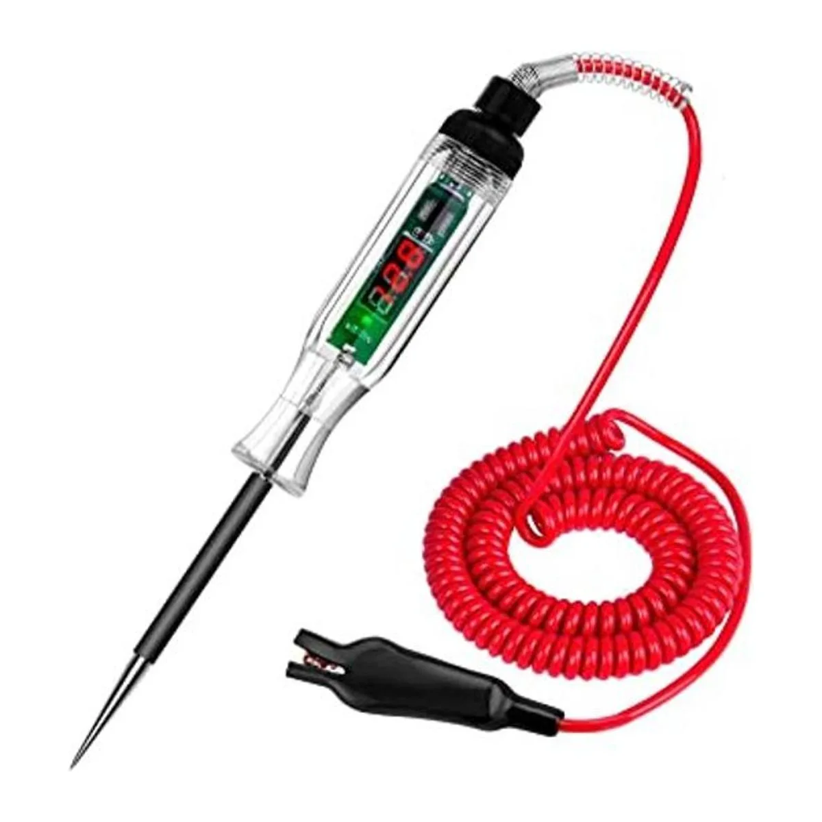 Probador de circuito automotriz LED digital de alta calidad, luz de prueba DC 2.6V32V con cable de resorte extendido de poliuretano portátil, probador de luz de bajo voltaje de circuitos de vehículos con sonda de acero inoxidable afilada