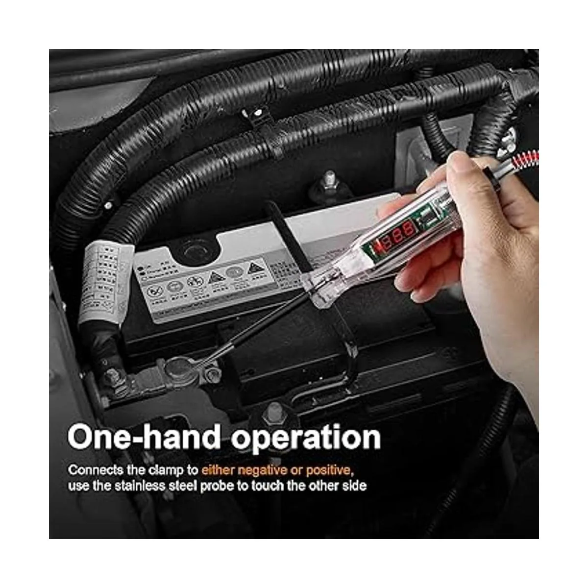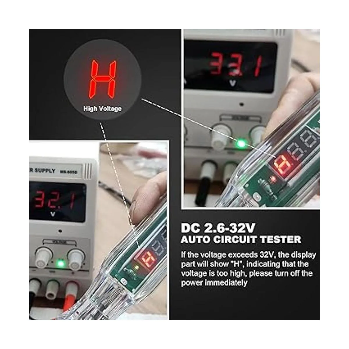 Amplia aplicación: probador de circuito automotriz profesional con rango de prueba de voltaje de 2,6 a 32 V CC, ideal para comprobar circuitos eléctricos de varios vehículos, comprobar rápidamente los faros delanteros, luces traseras, circuitos de señal de giro, enchufes defectuosos, conexiones de fusibles, también para probar otros cables y circuitos de 2,6 a 32 V CC.