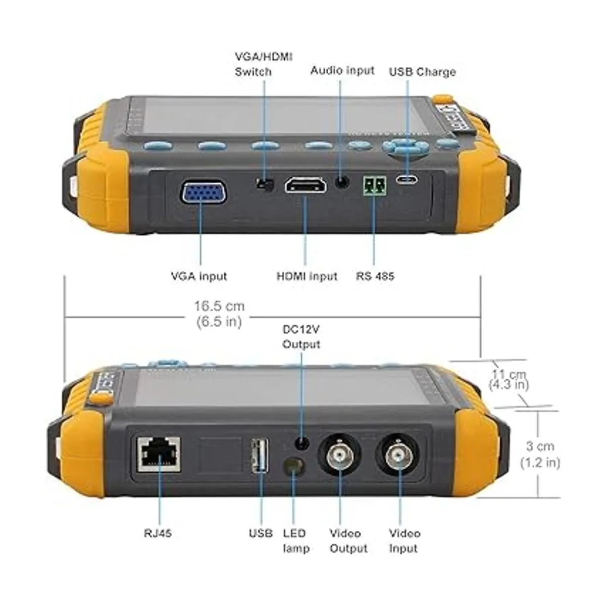 El probador CCTV incorpora una batería 18650 de 2600 mA, después de cargar 34 horas, tiempo de trabajo dura 11 horas, largo tiempo de espera. Cuerpo pequeño, portátil y más fácil de llevar.
