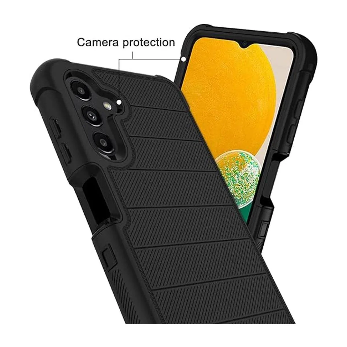Probeetle Funda para Galaxy A13 5G, Samsung A13 5G con protector de pantalla HD grado militar a prueba de golpes 3 en 1 duradera híbrida protectora de policarbonato y TPU para Samsung Galaxy A13 5G negro