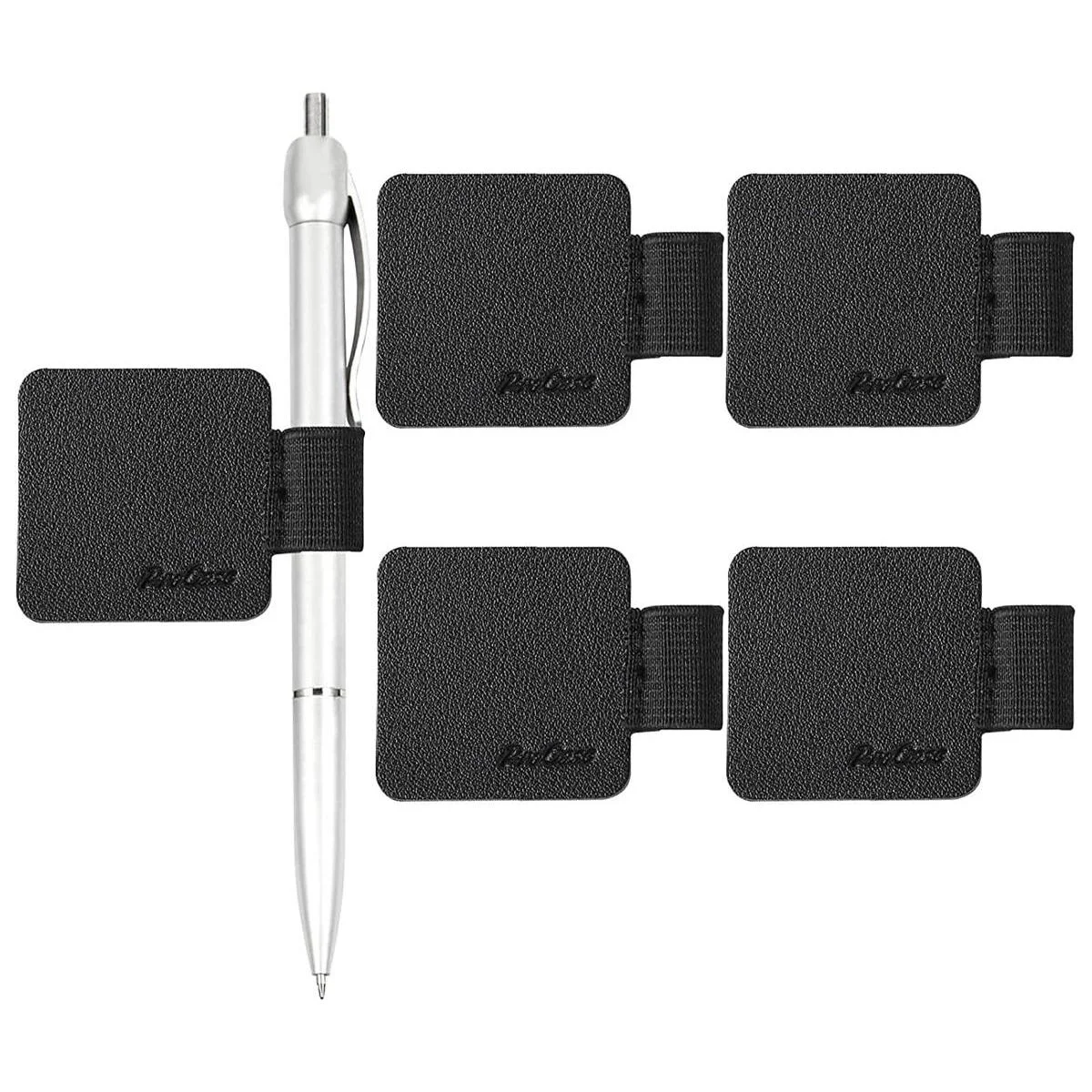 ProCase Estuche para lápices para cuadernos, diarios, planificadores, tabletas, soporte para lápices de cuero autoadhesivo con lazo elástico para bolígrafos, lápiz de manzana, lápiz capacitivo, color negro