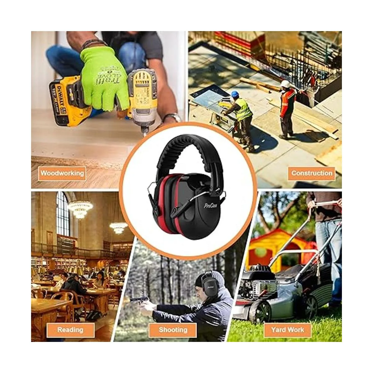 ProCase Orejeras de seguridad con reducción de ruido, protección auditiva para disparadores, protección auditiva, NRR 28dB, para el campo de tiro, la siega, la construcción, la fabricación de carpintería, para hombres, mujeres, adultos, color rojo