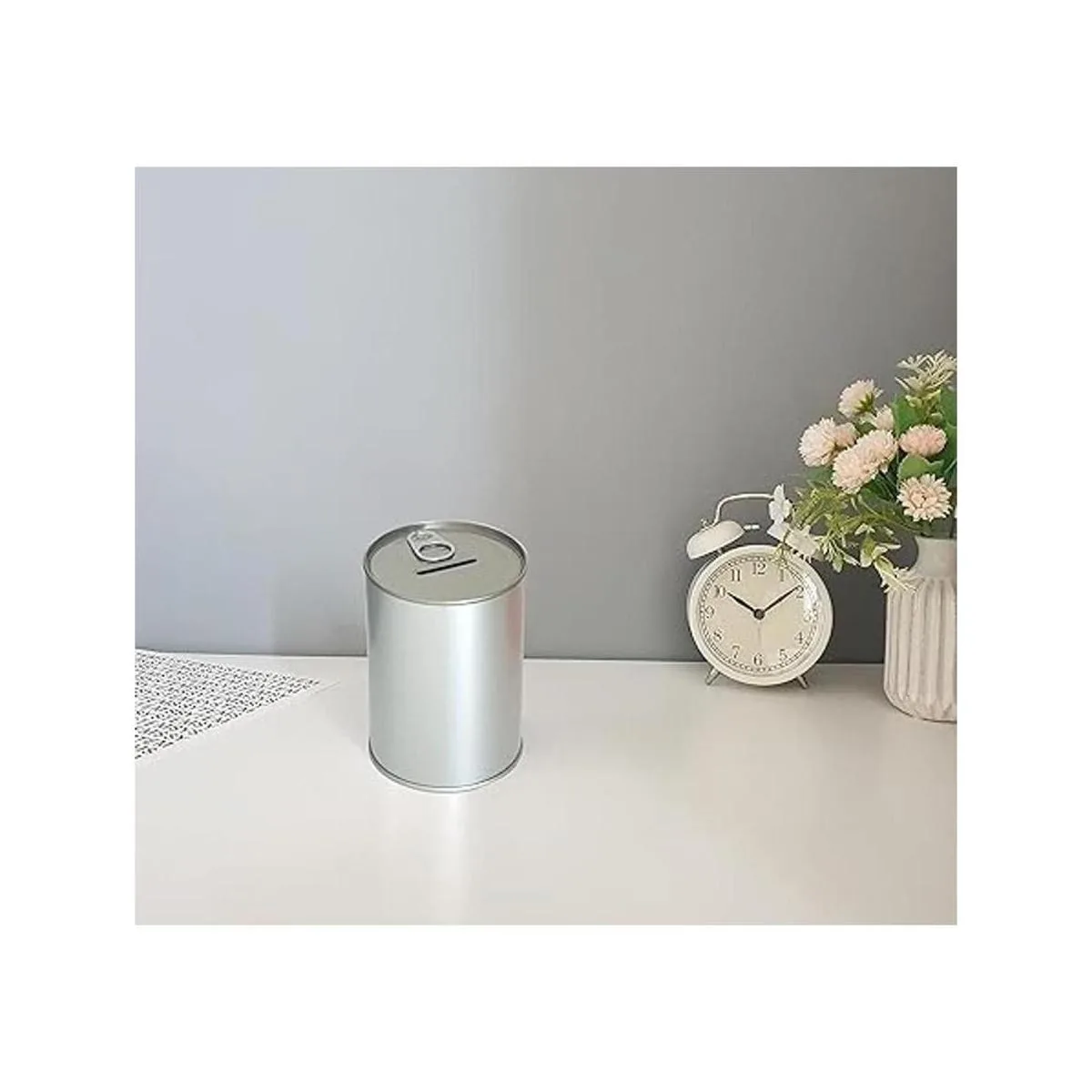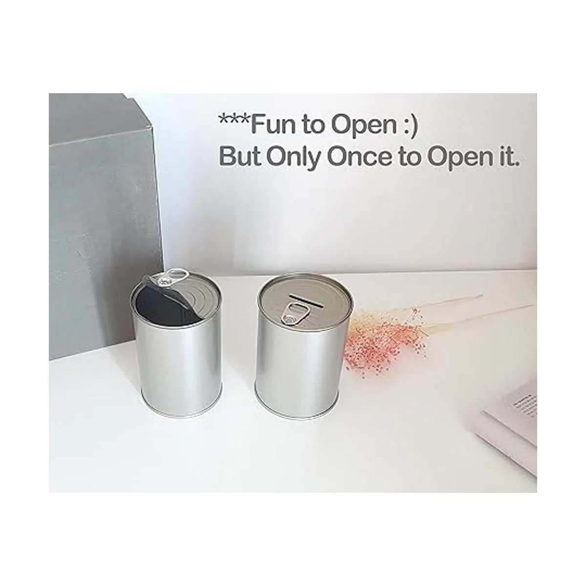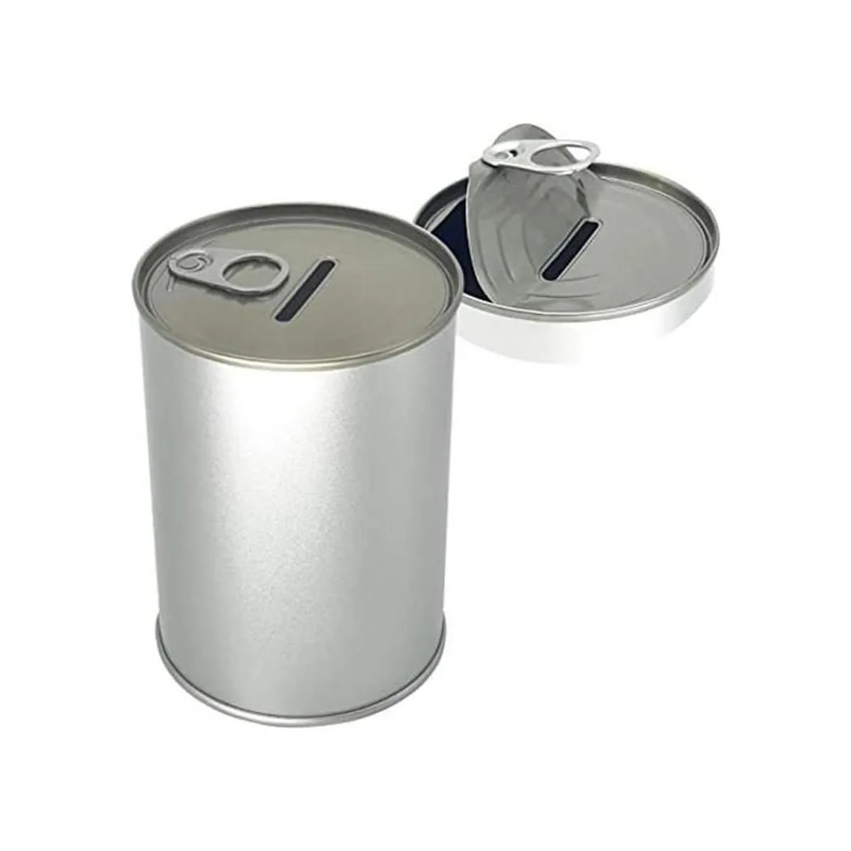 Produco Caja de ahorro de metal con moneda de dinero sin roturas para abrir con tapa de extremo fácil de abrir para adultos y niños plata