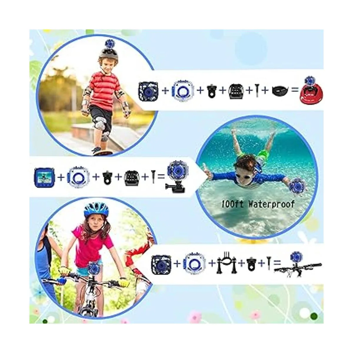 PROGRACE Cámara impermeable para niños, videocámara digital de acción 1080 HD para niños, juguetes, regalos, juego integrado azul