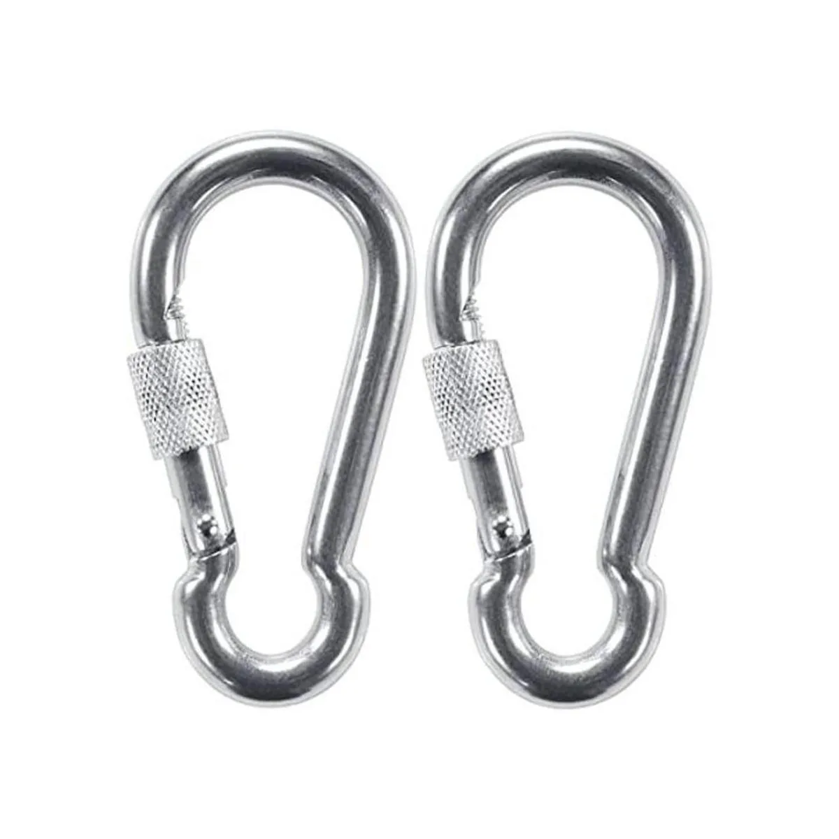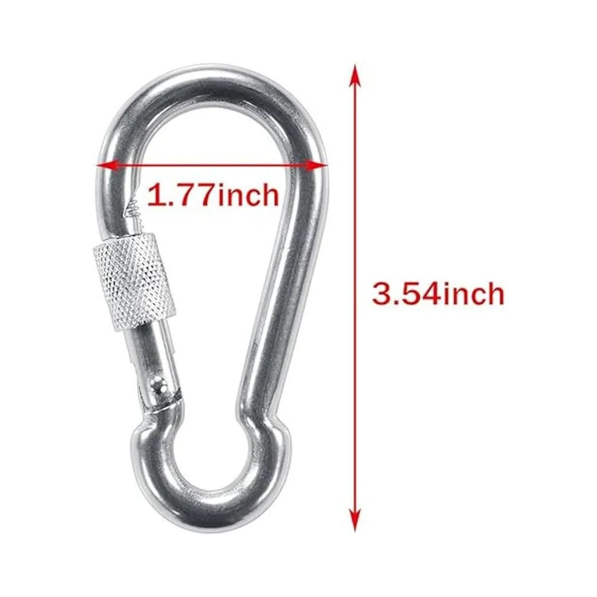 Multiusos: tamaño 3.54 x 1.58 x 0.35 pulgadas largo x ancho x profundidad. Ganchos de mosquetón de acero inoxidable 316 adecuados para trabajos al aire libre, cuelga una hamaca, columpio colgante, etc. El paquete incluye: 2 mosquetones.