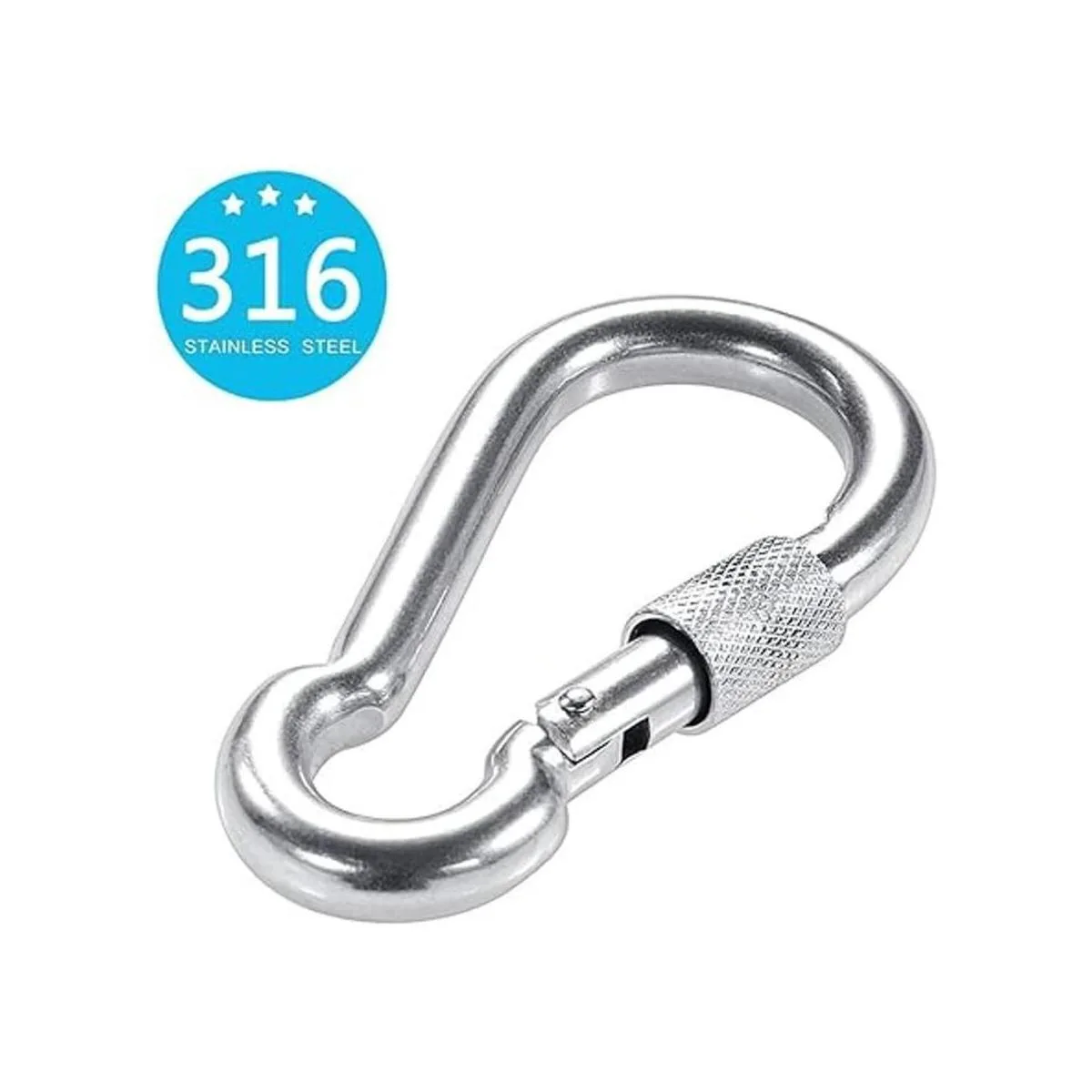 Alta calidad: mosquetones de bloqueo resistentes hechos de material de acero inoxidable 316 de alta dureza. Adopta un proceso de pulido, duradero y resistente al desgaste. No tienes que preocuparte por que se oxide.