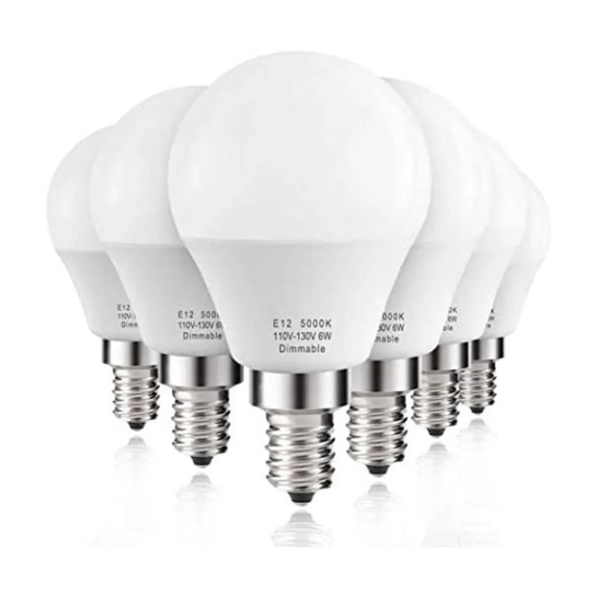 Prosperbiz Bombillas LED E12 regulables de 6 W equivalente a 60 W, bombilla redonda de candelabro de base pequeña, 550 lúmenes, luz blanca diurna 5000 K, bombilla LED A15 con forma de globo, bombillas de ventilador de techo G45, paquete de 6