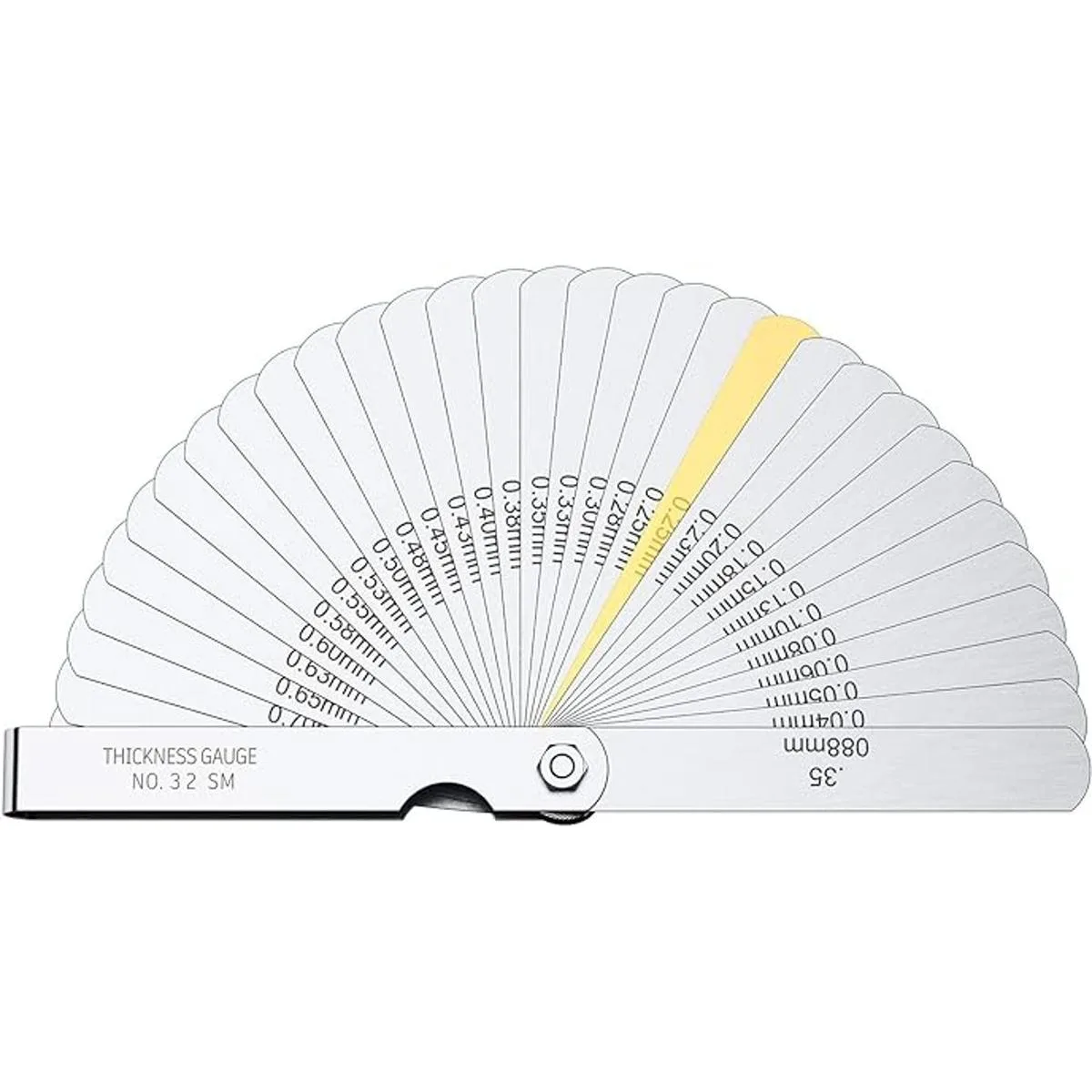 Calibre de 32 cuchillas: 0.002 in a 0.035 in, cada calibrador de sensor está grabado con láser con pulgadas y milímetros para una fácil identificación; plegable para fácil transporte y almacenamiento