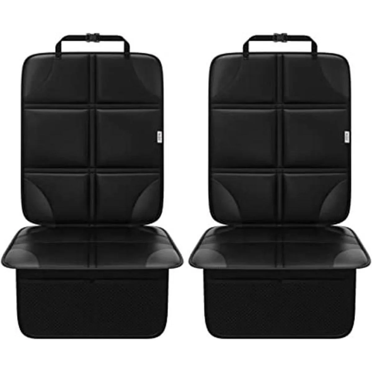 Protector de asiento de coche, respaldo acolchado antideslizante que no deja impresión, protector de asiento de coche más grueso para asiento de coche infantil, paquete de 2 unidades para SUV, sedán, camión, asiento de coche de cuero negro