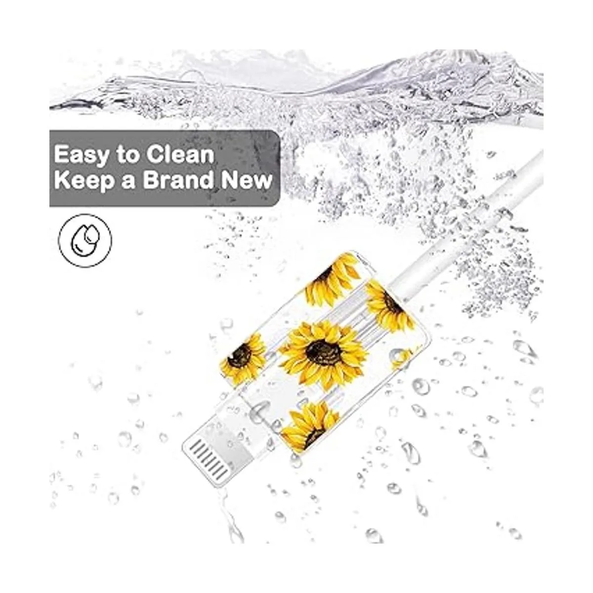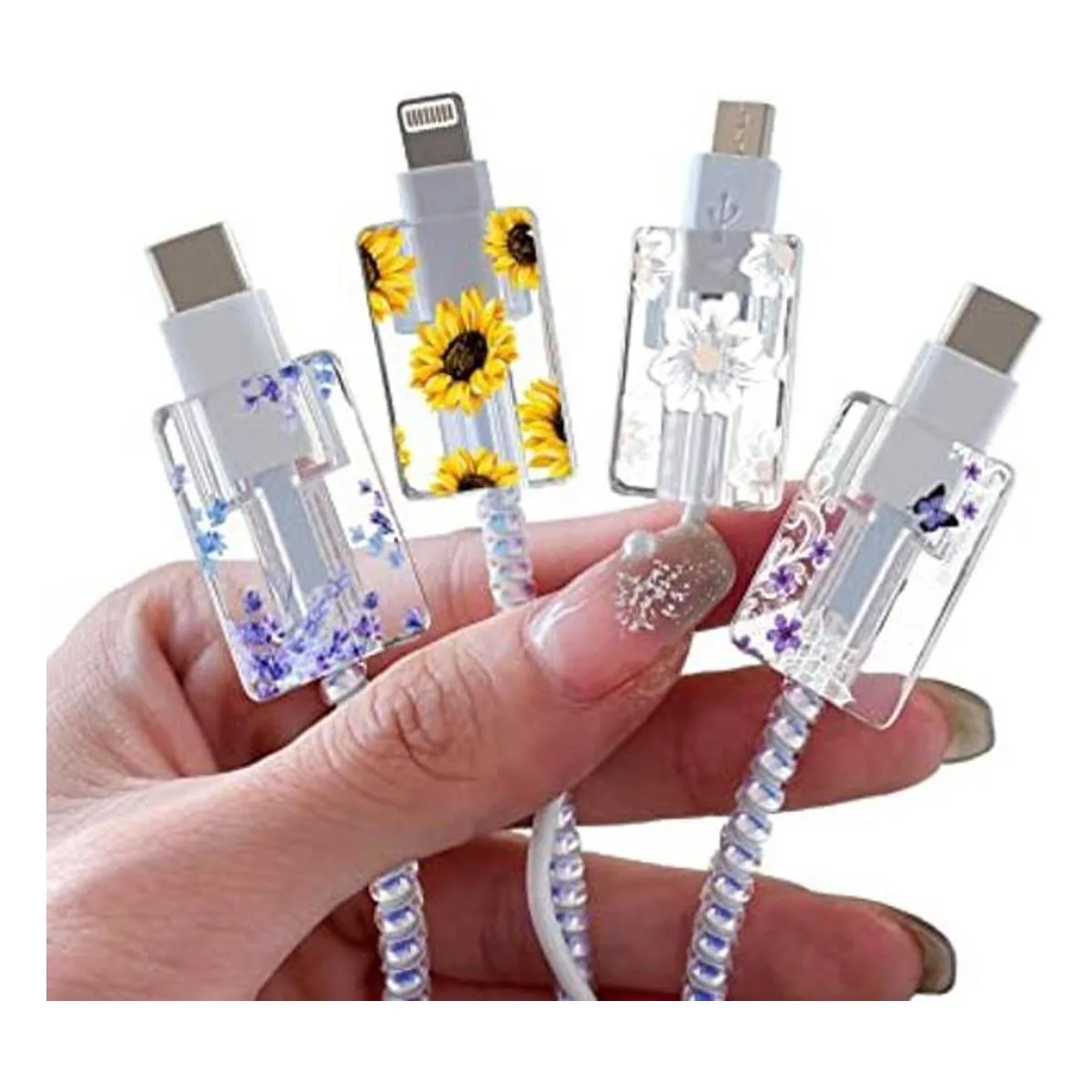 Protector de cable floral de flores para iPhone cargador, lindo patrón de flores de girasol lavanda, 4 piezas, protector de cable de iPhone, protector de cable de carga, chomper, protector de cargador cable rayo