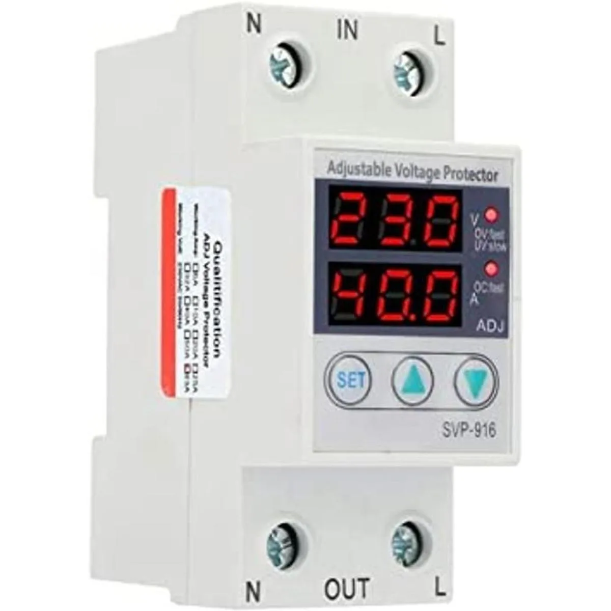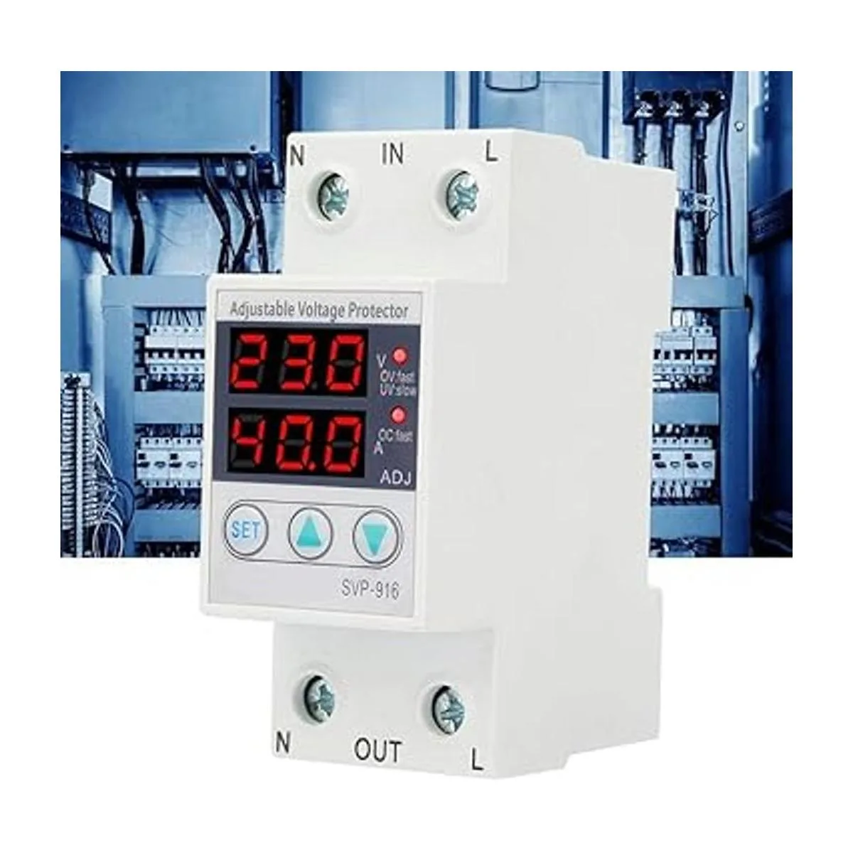 Protector de corriente, dispositivo de protección inteligente de corriente de sobrevoltaje ajustable de una sola fase de voltaje bajo voltaje 230 VAC