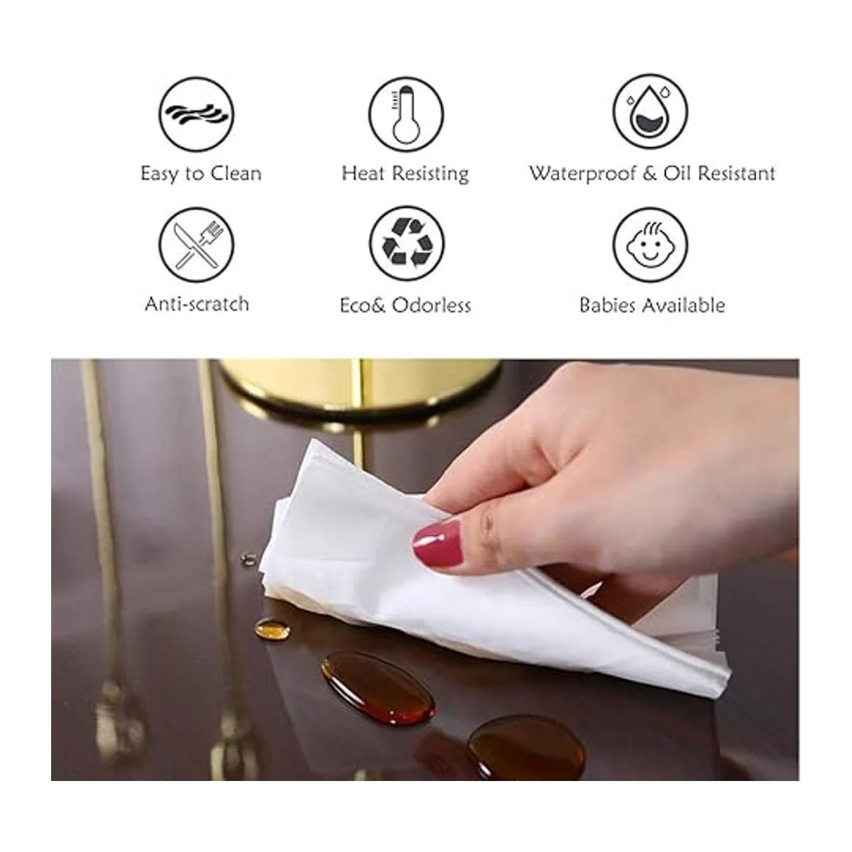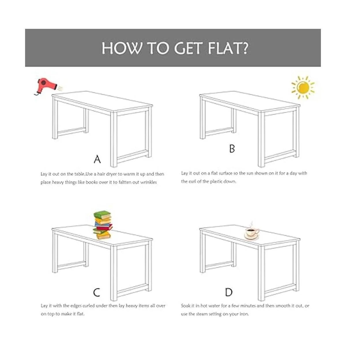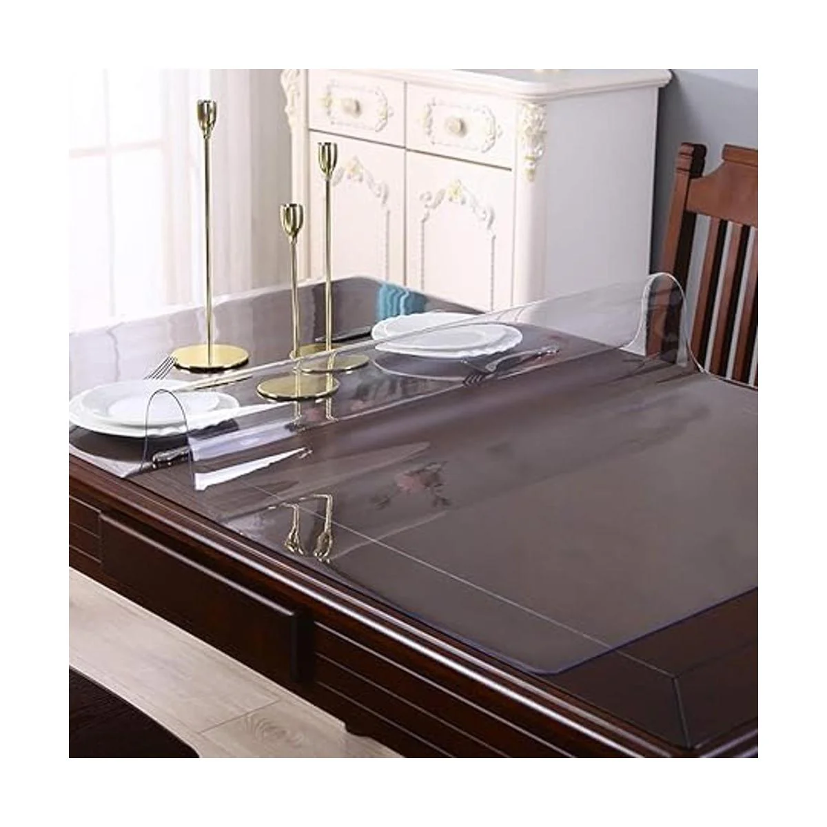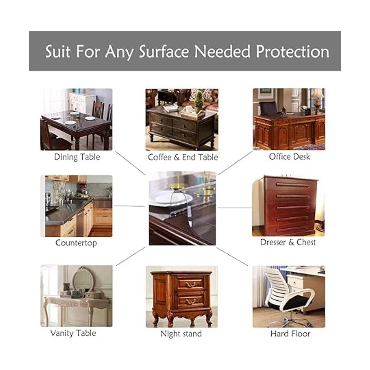 A. Aplicación y mantel ecológico de PVC sin BPA, protector superior de muebles, cubierta de mantel de vinilo de plástico transparente, uso como camino de mesa o manteles individuales. Para proteger mejor tu mesa, escritorio, mantel y muebles contra arañazos, rozaduras, manchas, derrames, etc. Ideal para mesa de comedor, mesa de madera, vidrio, mármol, parte superior de acero inoxidable, escritorio de oficina, escritorios de escritura, mesa de café y auxiliar, banco de TV, tocador y mesa de pecho, mesita de noche, encimera, alfombrilla de silla de oficina, suelo duro, etc.
