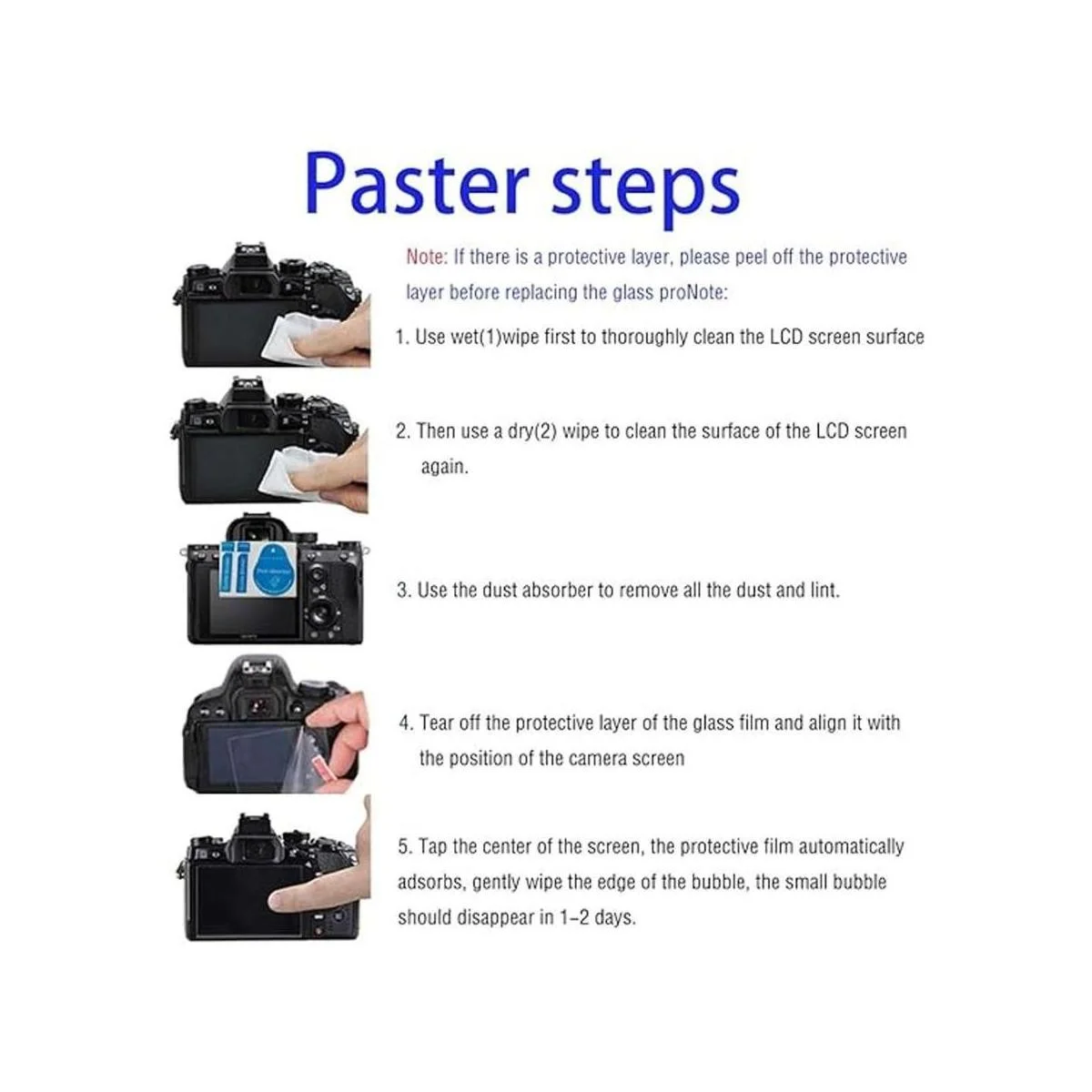 Borde de la cubierta, sin burbujas, evita arañazos, sin huellas dactilares, evita eficazmente daños repentinos, protege la pantalla de tu cámara.