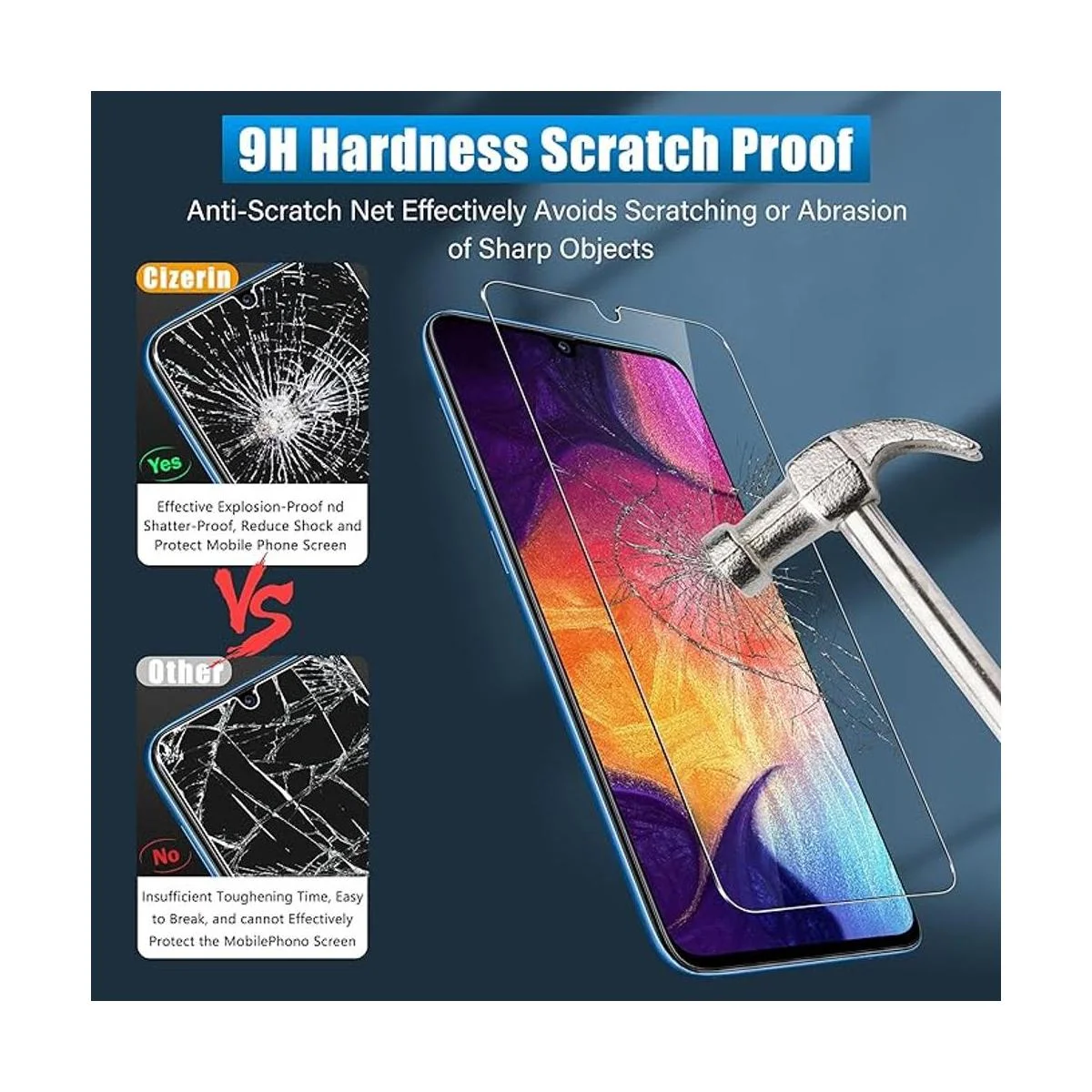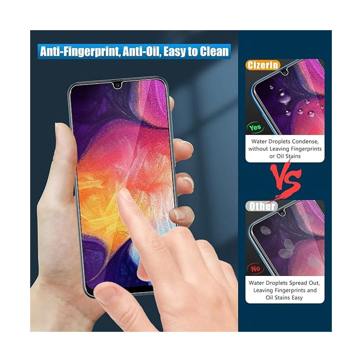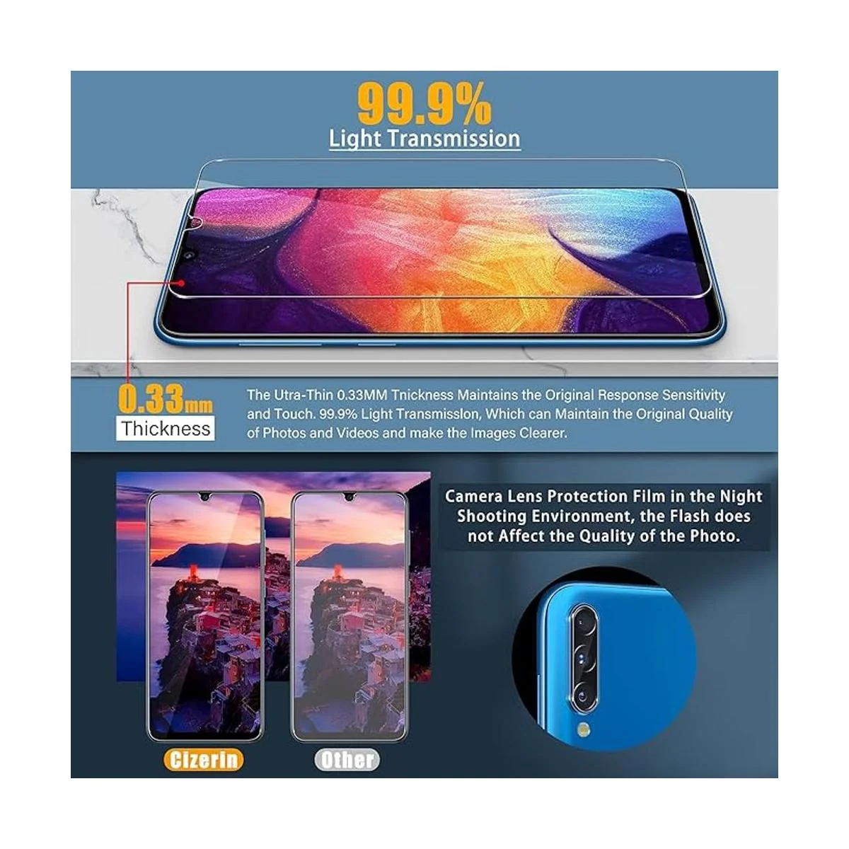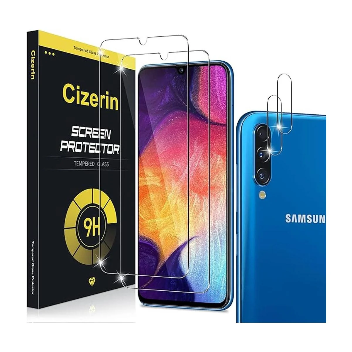 Protector de pantalla de vidrio templado Cizerin para Samsung Galaxy A50 y protector de lente de cámara, antihuellas, a prueba de roturas, claridad HD, compatible con fundas, Gorilla Glass
