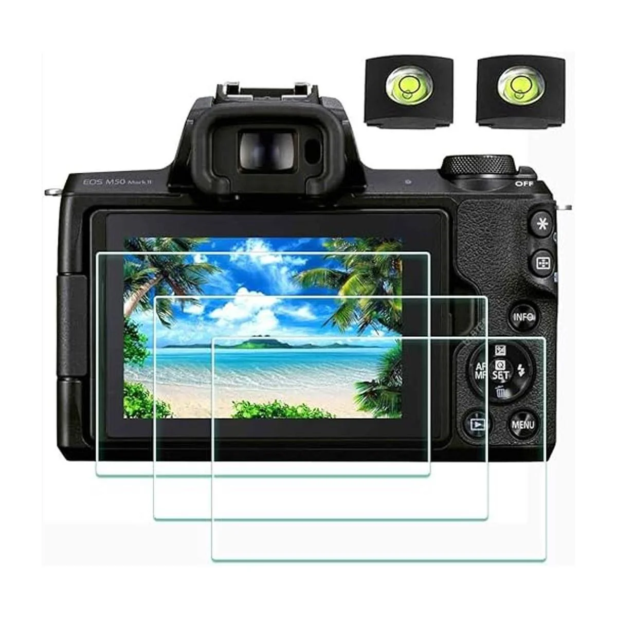 Protector de pantalla para cámara Canon EOS M50 Mark II y cubierta de zapata caliente, ULBTER 0.012 in dureza 9H ultra transparente, protector de pantalla de vidrio templado, antiarañazos, antihuellas, antipolvo, antiburbujas 3 unidades