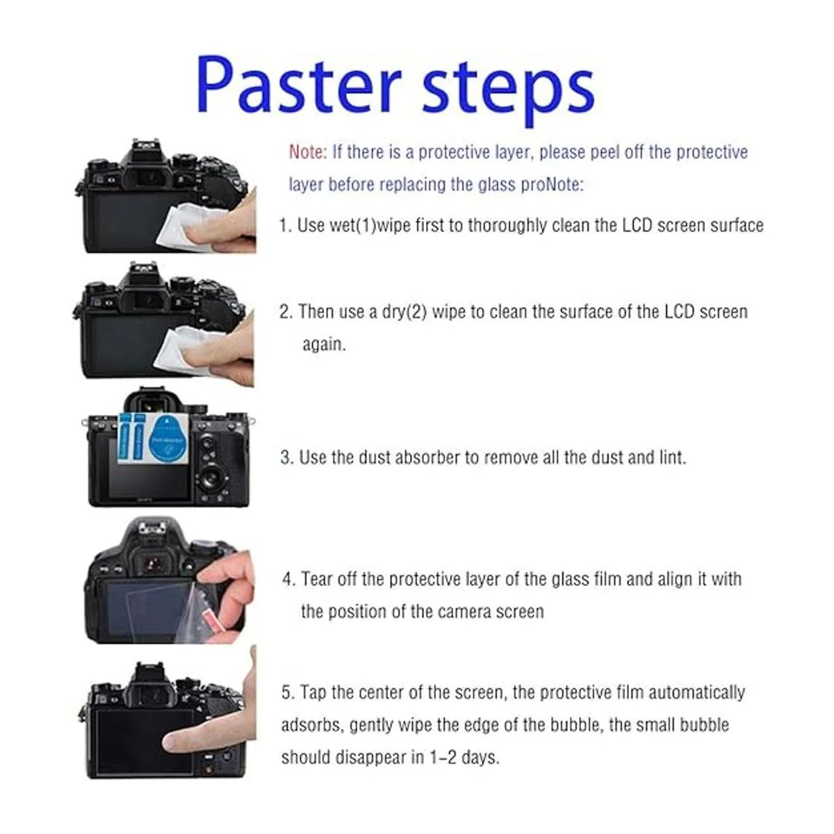 Borde de la cubierta, sin burbujas, evita arañazos, sin huellas dactilares, evita eficazmente daños repentinos, protege la pantalla de tu cámara.