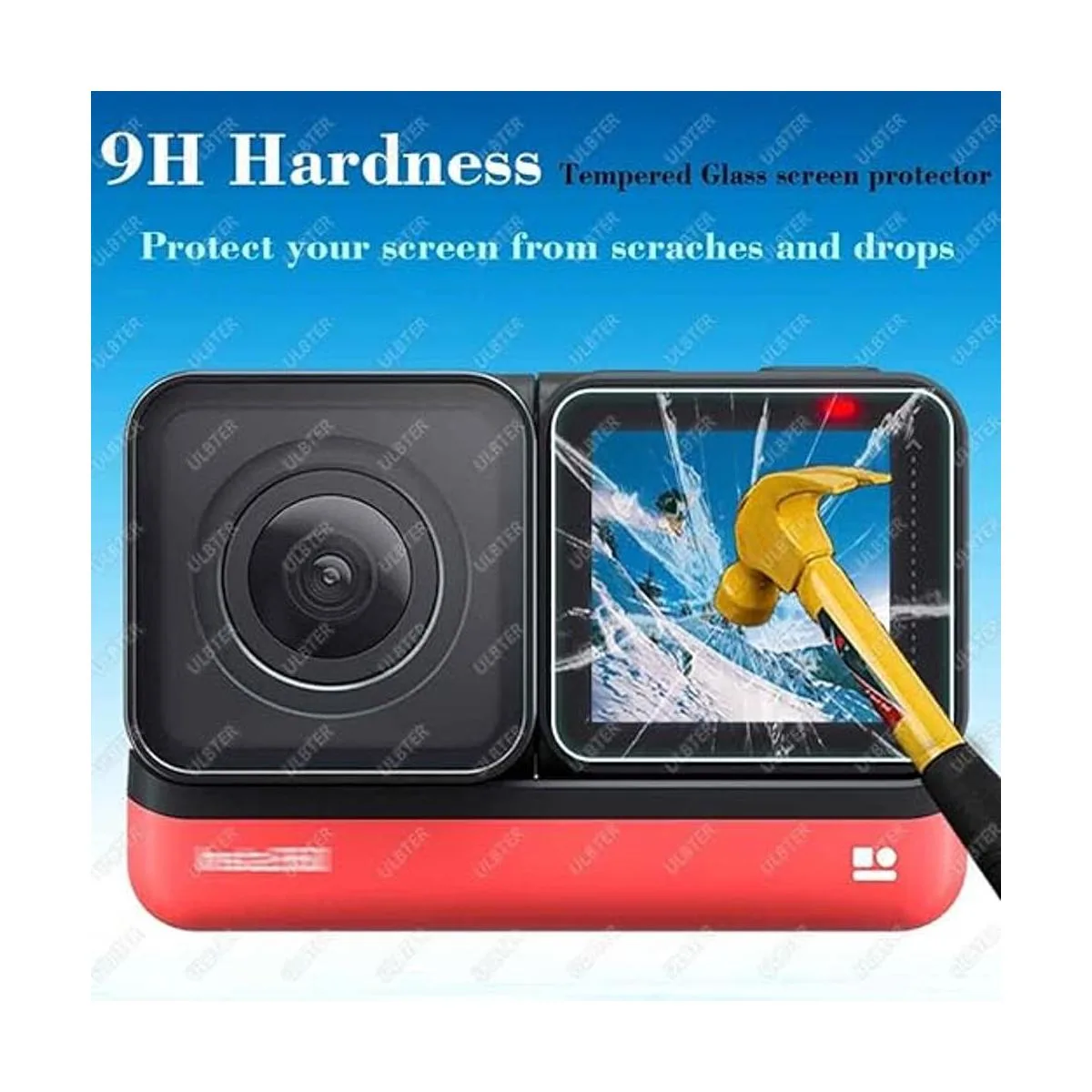 Protector de pantalla para Insta360 ONE R, 2 juegos de protectores de pantalla para LCD lente gran angular 4K lente de edición de 1 pulgada, cubierta de vidrio templado ultratransparente de 0.012 in 9H