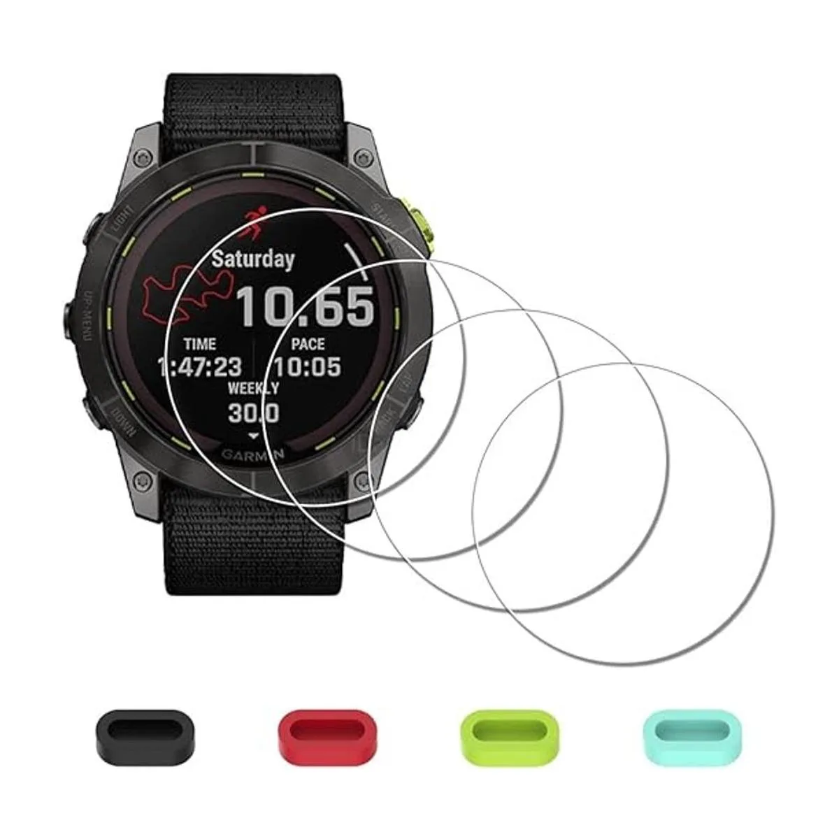 Compatible solo con Garmin Enduro 2 Ultraperformance Multisport GPS Smartwatch solamente, no es compatible con Garmin Enduro y otros relojes. Incluye 4 piezas de vidrio templado con las cosas necesarias y 4 tapones antipolvo de silicona.
