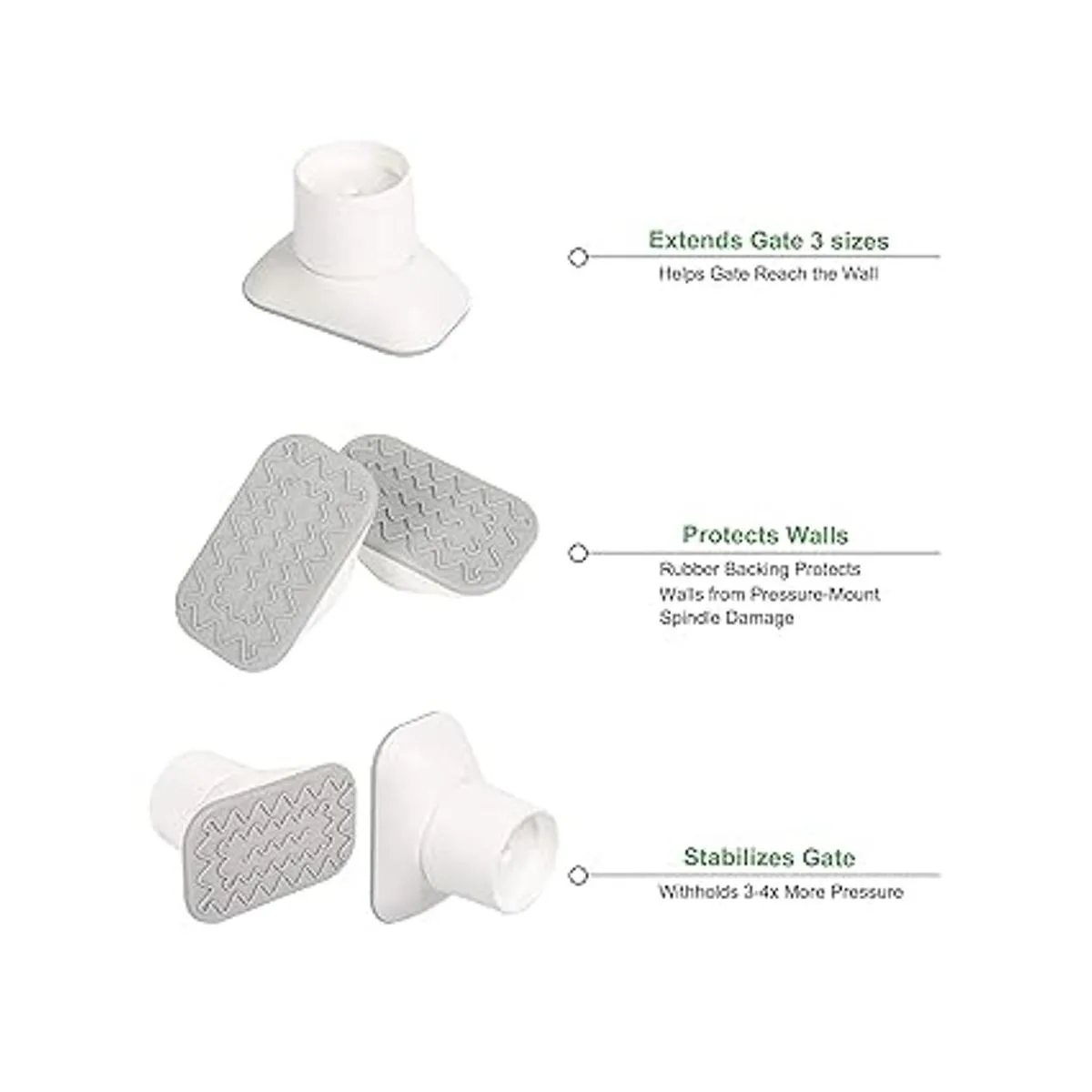 Extensión de 3 tamaños de ancho: este protector de pared de nuevo diseño extiende la puerta del bebé de 1.1, 2.3 y 3.5 pulgadas. Puedes elegir solo instalar el protector de pared o con extensores. Añade de 2,8 a 3.5 in de longitud a las puertas de tu bebé o mascota.