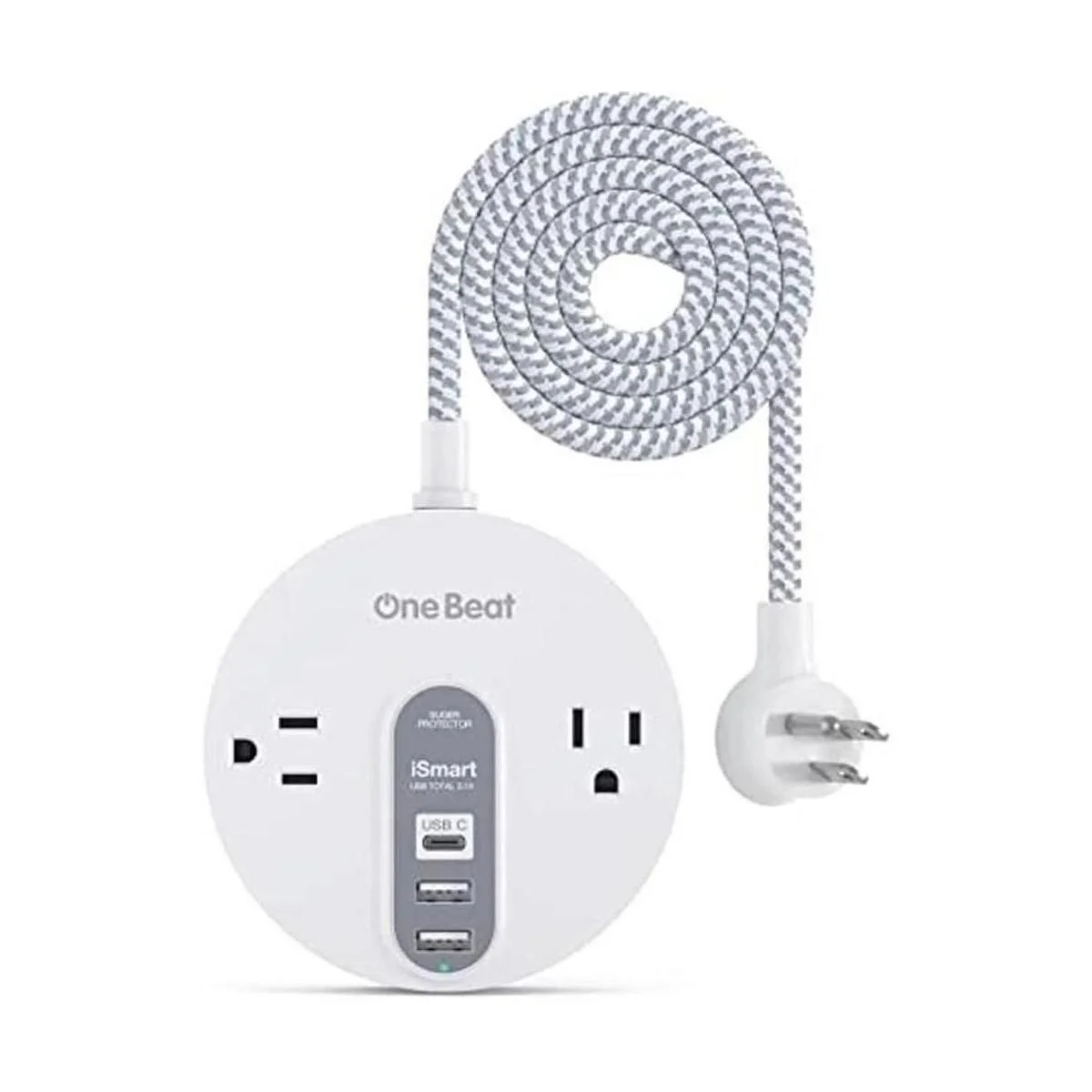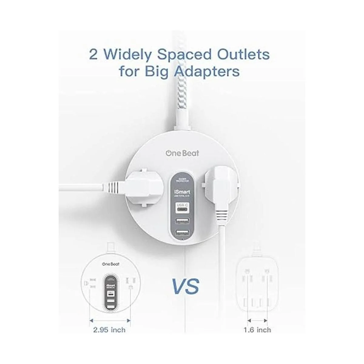 Carga rápida y salidas de CA amplias: las salidas ampliamente espaciadas están lo suficientemente separadas como para adaptarse a enchufes grandes sin bloquearse entre sí. 3 puertos USB en total de salida de 3.1 A/15 W, cada puerto USBA proporciona 5 V/2.4 A máximo, y el puerto USBC puede hasta 5 V/3 A máx. Con tecnología de carga inteligente, puede detectar automáticamente tus dispositivos conectados y puede alcanzar una eficiencia de carga más rápida.