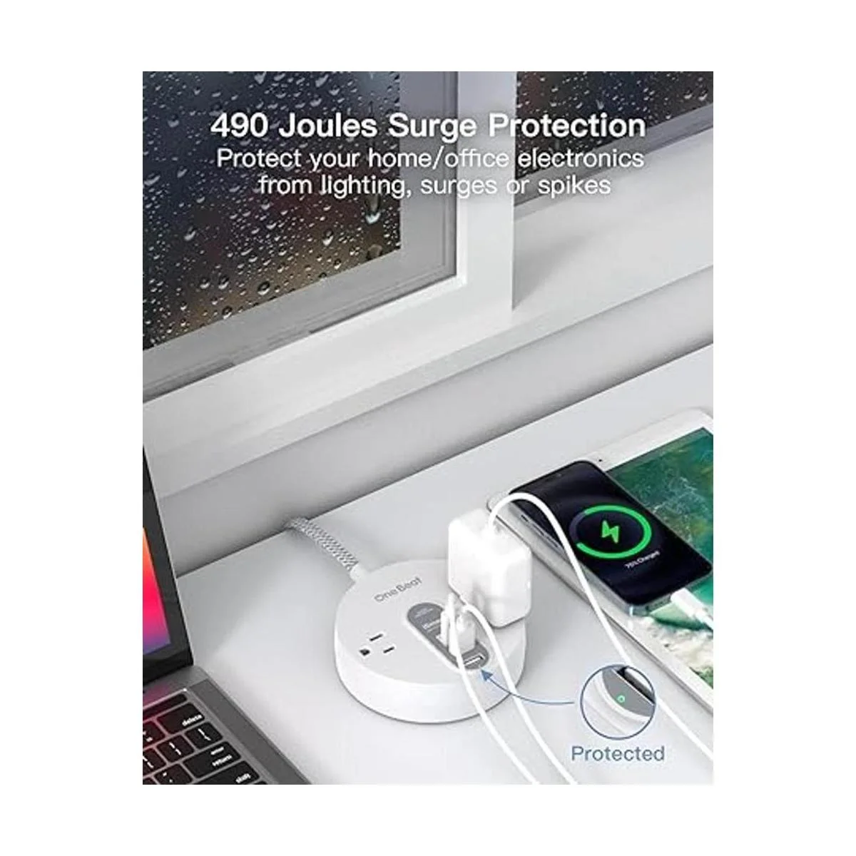 Protector de sobretensiones con USB C Cable de extensión de enchufe plano con 2 salidas de CA amplias y 3 USB, estación de carga de escritorio pequeña con cable de alimentación de 5 pies, compacto para viajes, hogar y oficina 490J