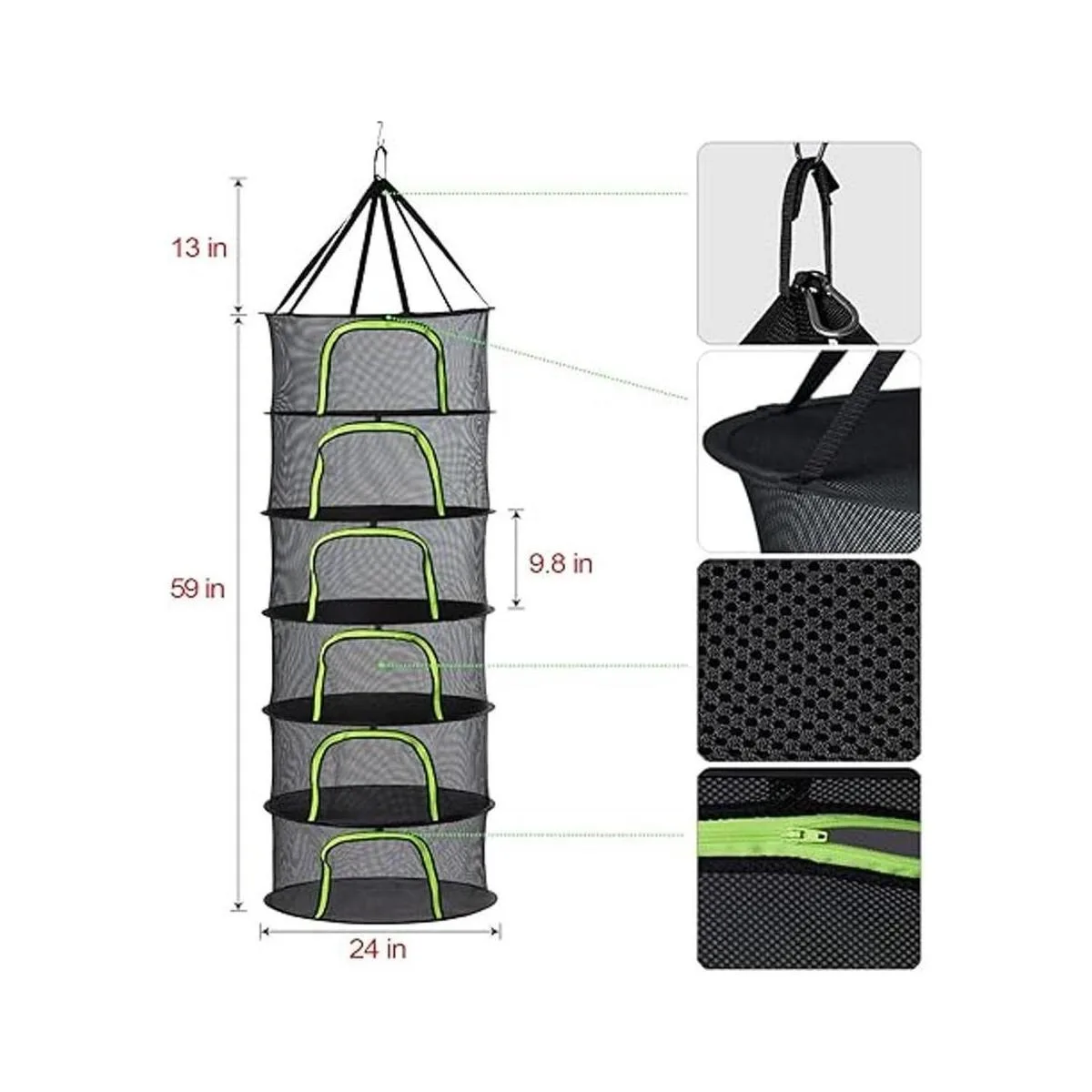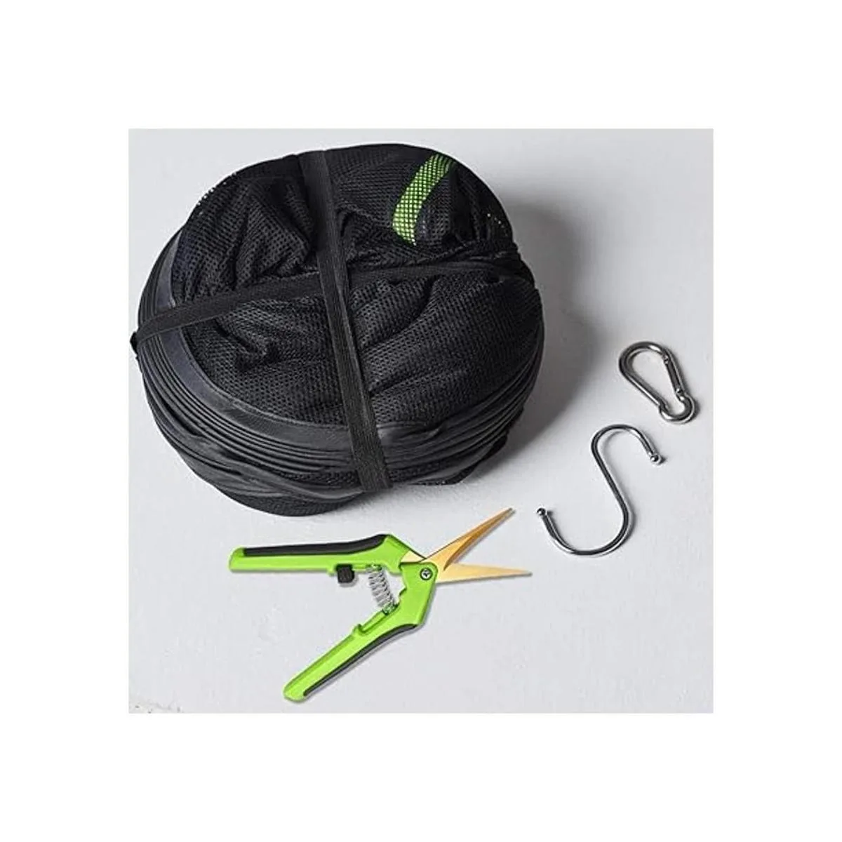 PROTITOUS Rejilla de secado de hierbas con cremallera de malla negra de 6 niveles para colgar en secadora con tijeras de podar para hidroponía, gancho adicional y mosquetón