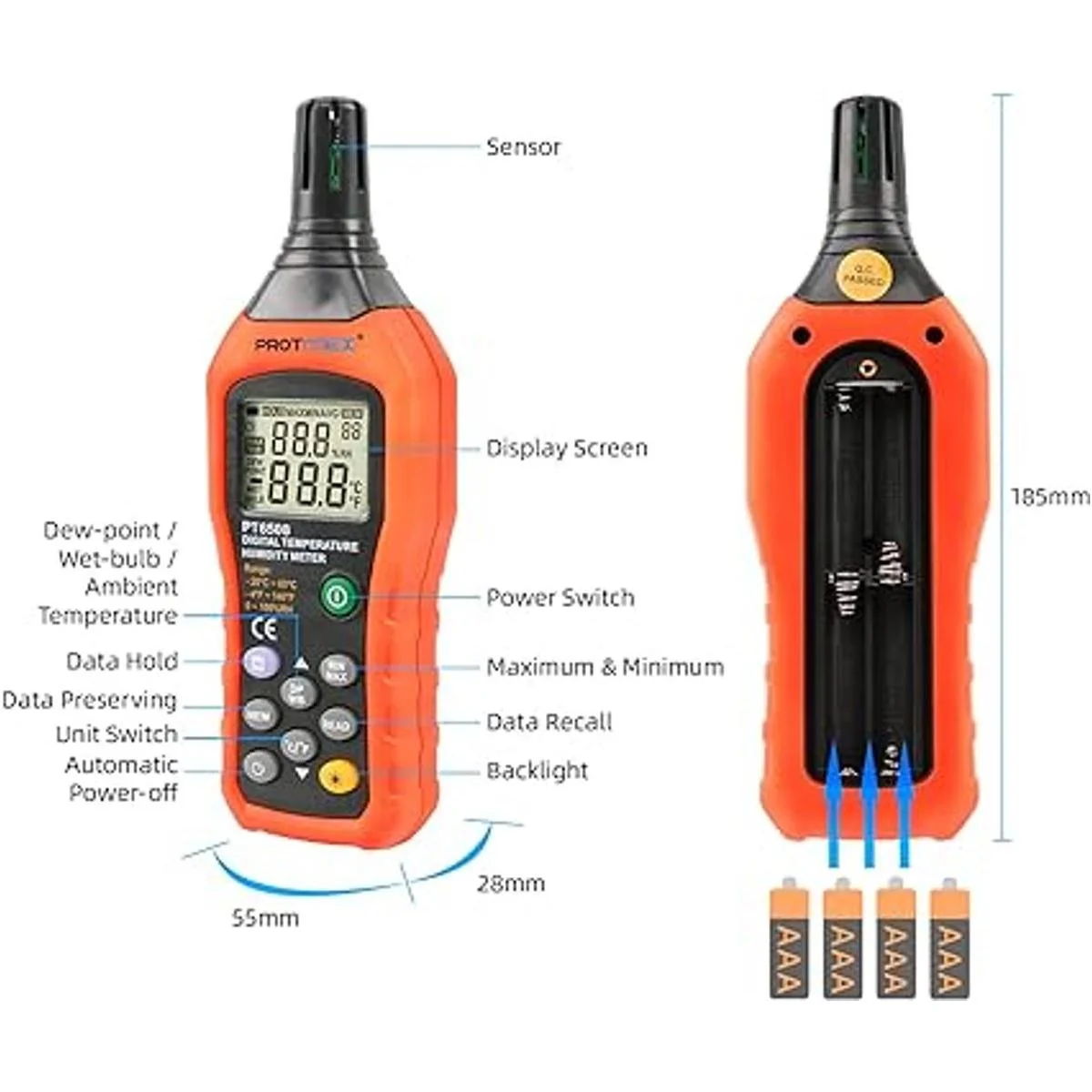 Protmex MS6508 Medidor digital de temperatura y humedad, CECOMINOD046940