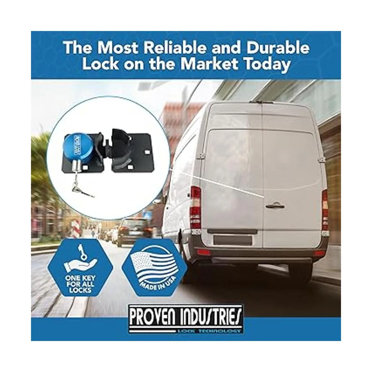 Proven Industries Kit de cerradura y cerrojo de disco, cerradura de puerta de almacenamiento, fabricado en los Estados Unidos, azul