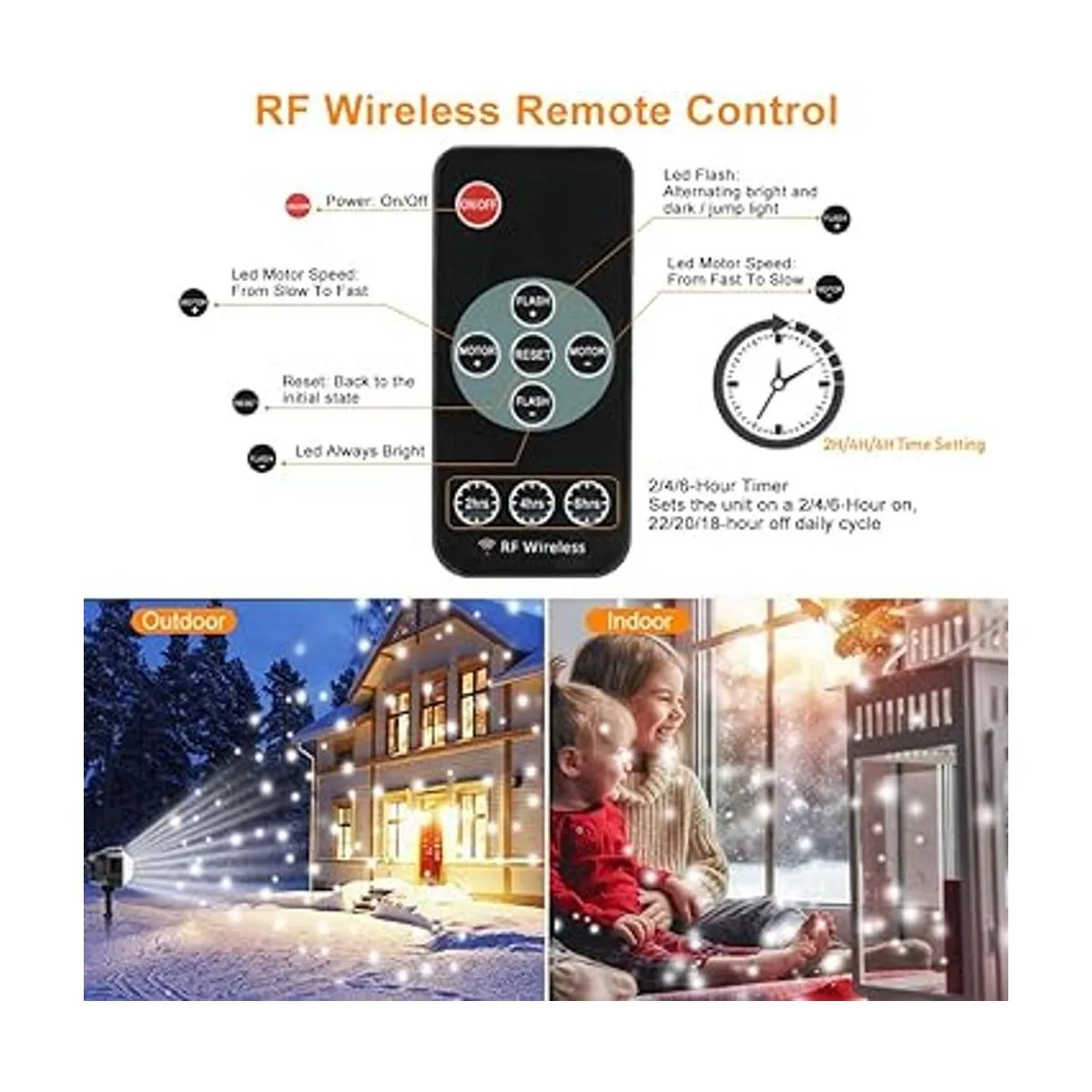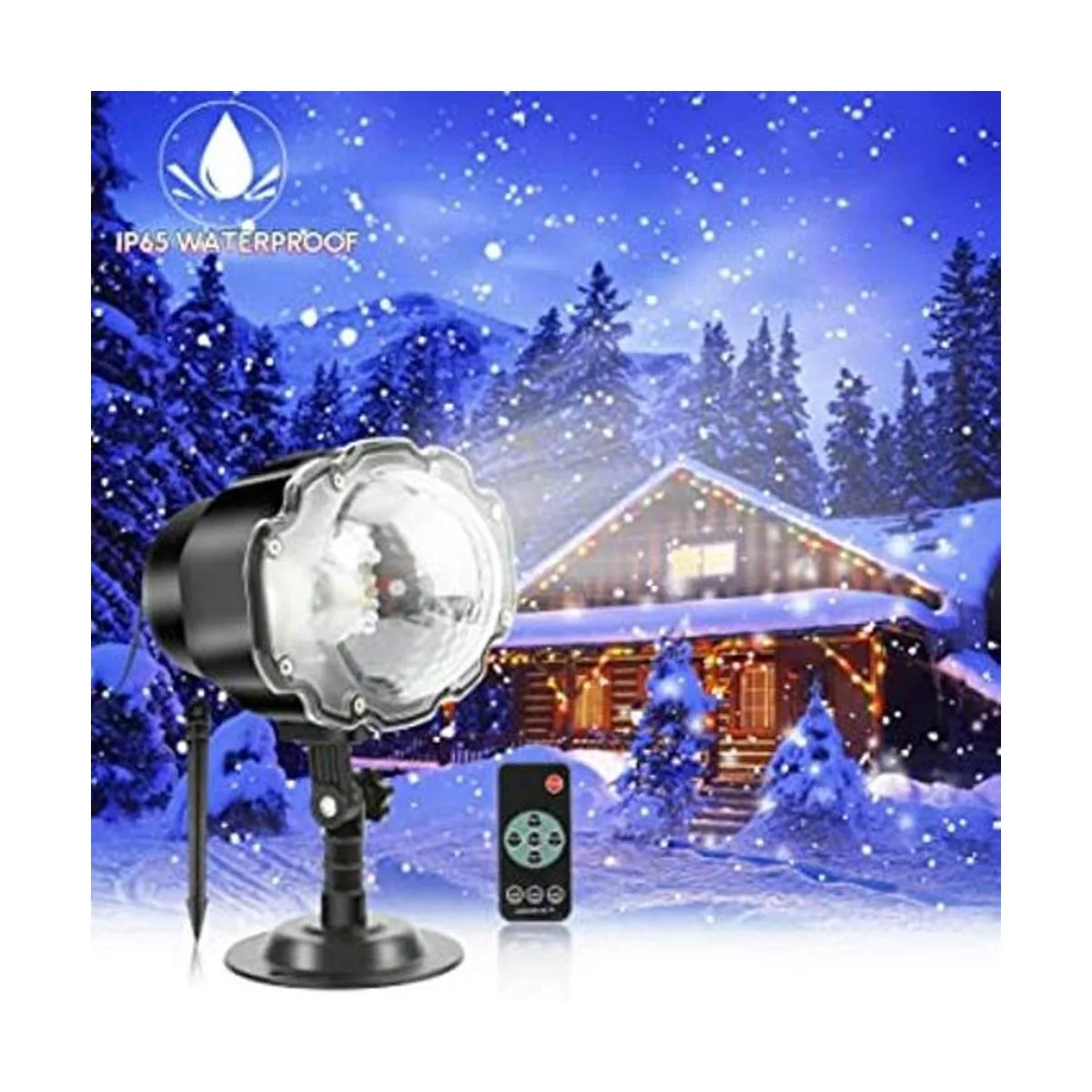 Proyector de luz de Navidad, para interiores y exteriores, proyector de luces con control remoto, lámpara giratoria para Halloween, Navidad, boda, jardín, paisaje, decoración puntos de nieve