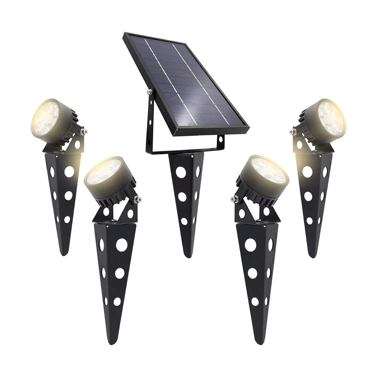 4 focos solares de jardín para exteriores, IP65 impermeable, 80120 lúmenes por fijación, acabado negro texturizado resistente a los rayos UV