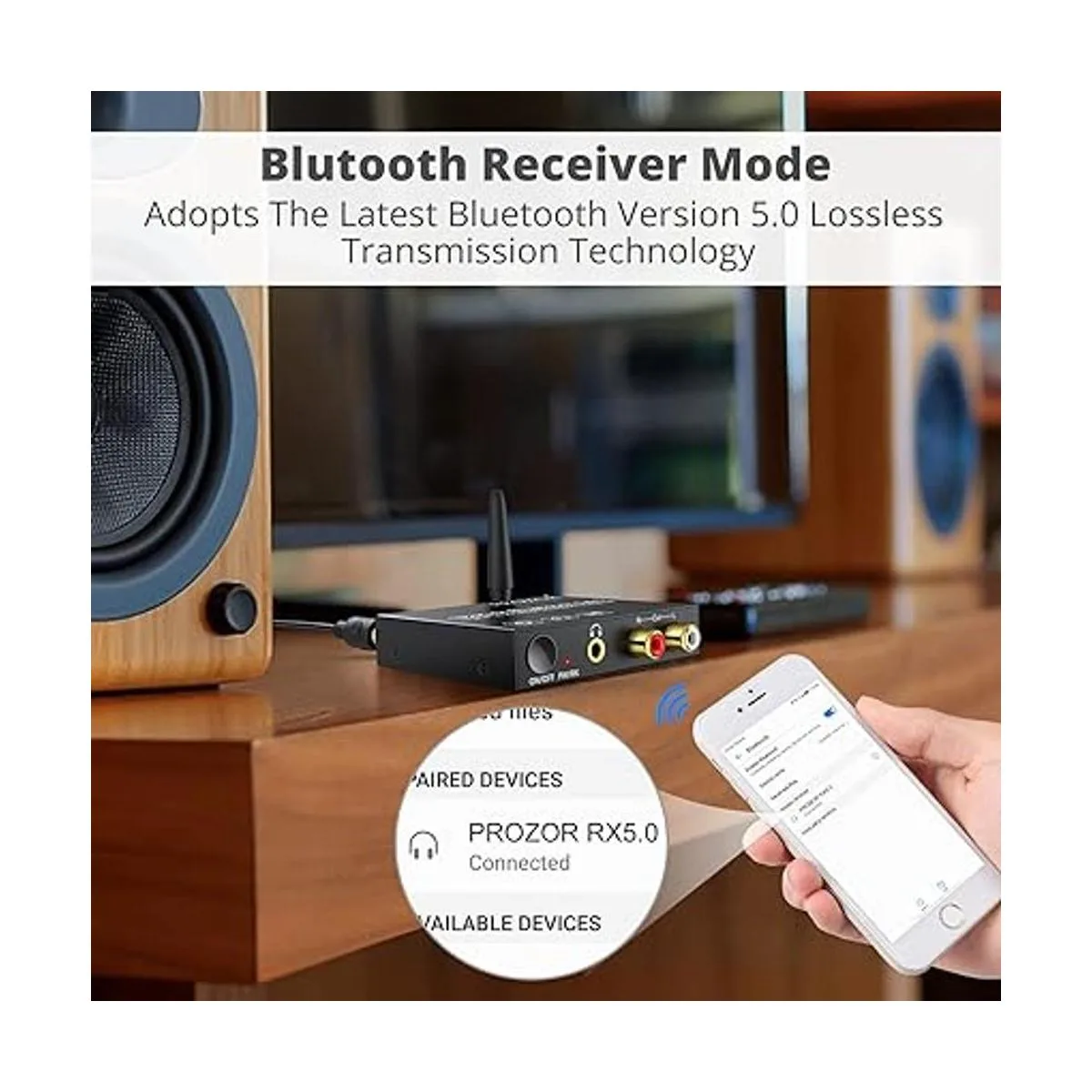 ltimo receptor Bluetooth 5.0: módulo receptor Bluetooth integrado, adopta la última tecnología de transmisión sin pérdidas Bluetooth 5.0, soporta conexión Bluetooth del dispositivo móvil.