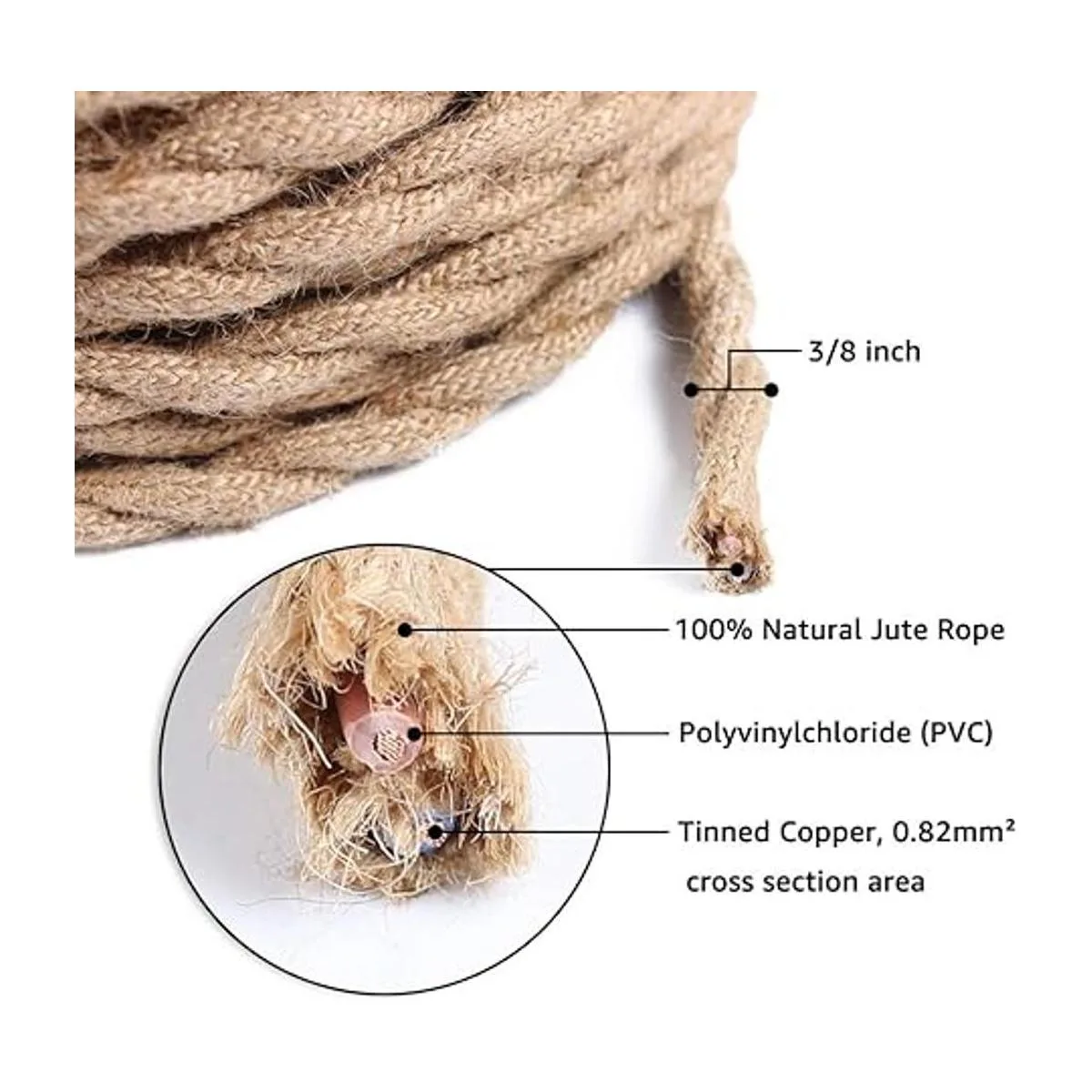 PRUNLLA Lámpara cubierta de cuerda de 25 pies, cable de cuerda de cáñamo eléctrico industrial vintage 182, calibre 18, estilo antiguo para lámpara retro, proyectos de bricolaje