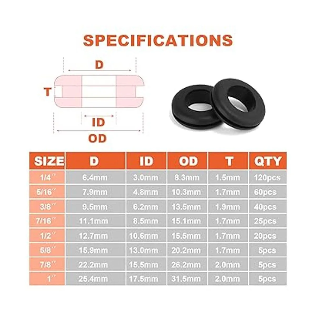 Amplia compatibilidad: el kit surtido de ojales de goma es útil en muchas profesiones como fontaneros, automoción, coche, cilindro, válvula, bomba, aparato eléctrico, tubería química, pulverización, tubería de agua, fontanería y reparación de hardware de PC/piano, decoración, etc.