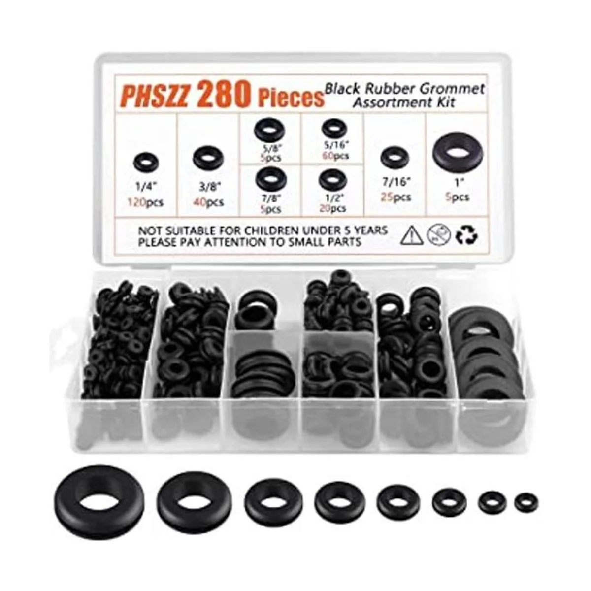 Juego de 280 piezas: ofrecemos 8 tamaños diferentes de ojales de goma, más que suficiente para su uso en cualquier escenario, 1/4 pulgadas 120 piezas, 5/16 pulgadas 60 piezas, 3/8 pulgadas 40 piezas, 7/16 pulgadas 25 piezas, 1/2 pulgada 20 piezas, 5 piezas, 1 pulgada 5 piezas, 1 pulgadas 5 piezas, 1 pulgada PC.