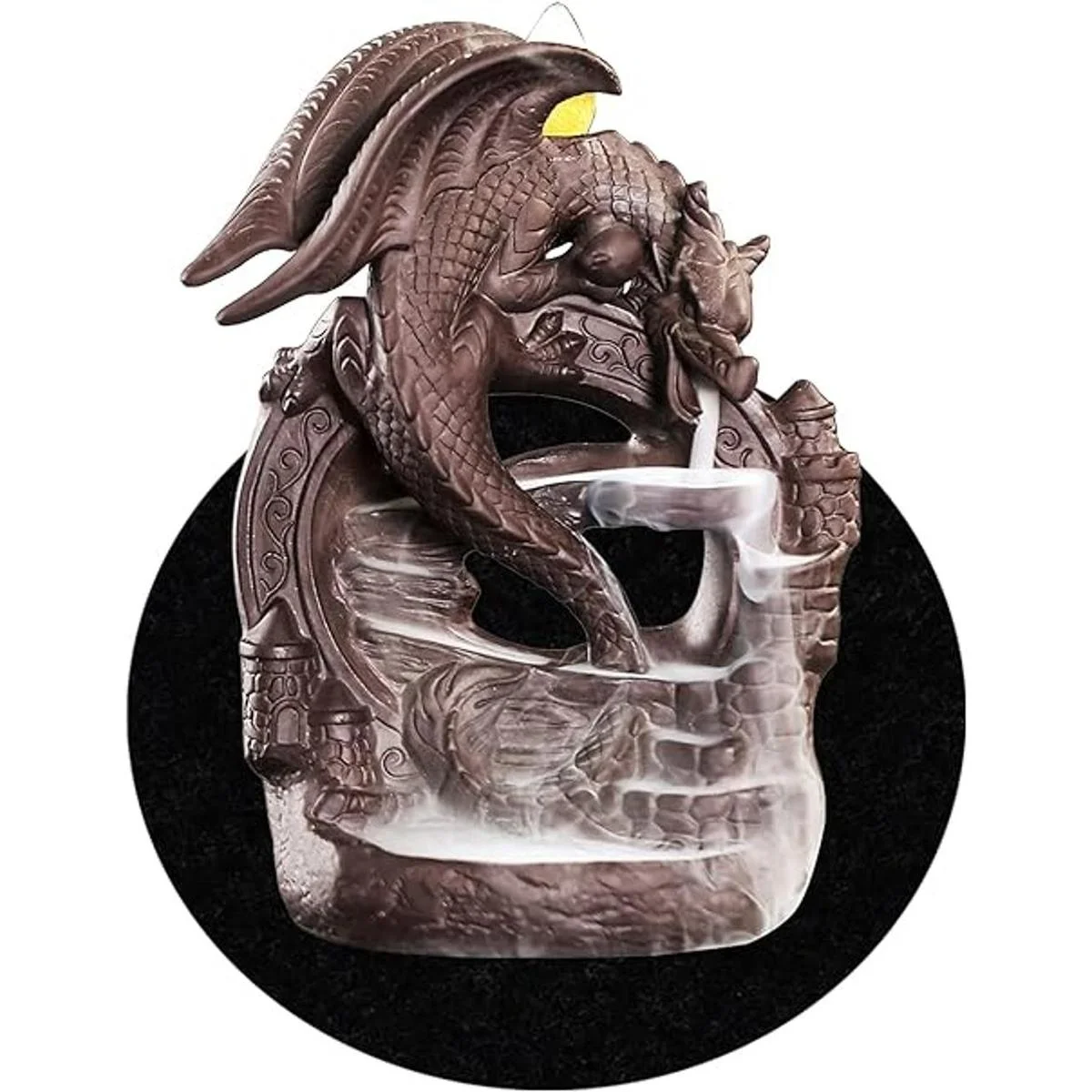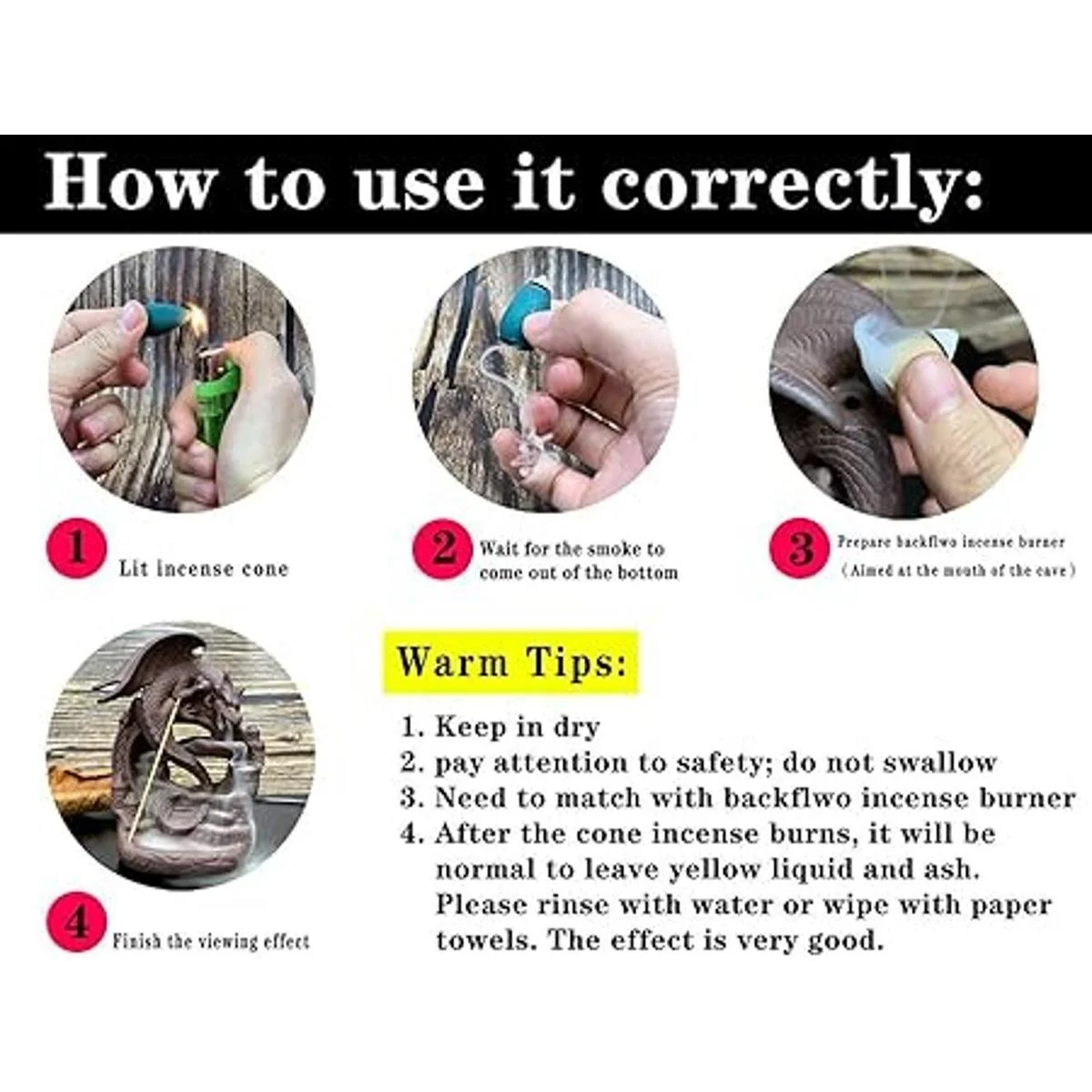 Novedad: necesita utilizar cono de incienso de reflujo, cono de incienso de combustión colocado en el agujero de los soportes de incienso, cuando se quema, el humo cae como una cascada, y el cono emite humo grueso que parece agua, creando un efecto de fuente fascinante y relajante.