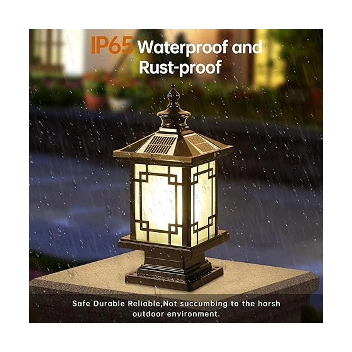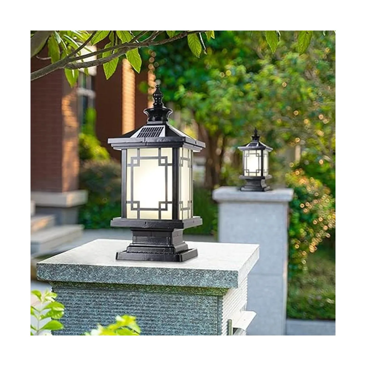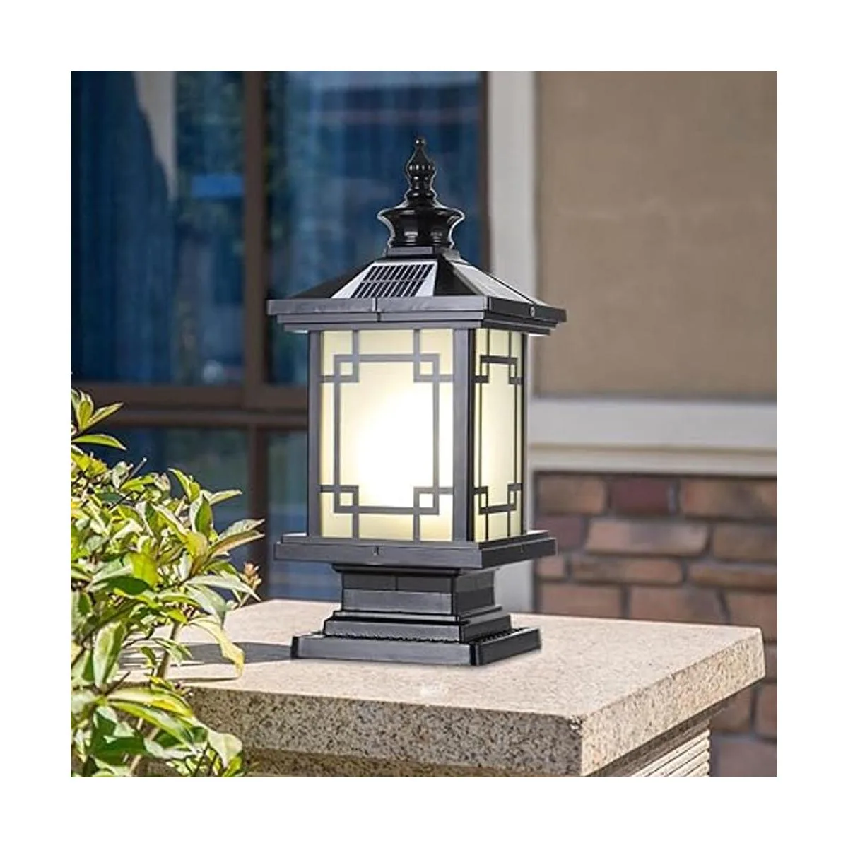 Diseño retro único: la luz de pedestal utiliza un cuerpo de lámpara de aluminio fundido de alta calidad, diseño retro y aspecto único de linterna con fuerte transmisión de luz que te ofrece un efecto de luz cómodo y suave, paneles solares inteligentes con detección de luz, apagan automáticamente las luces durante el día.